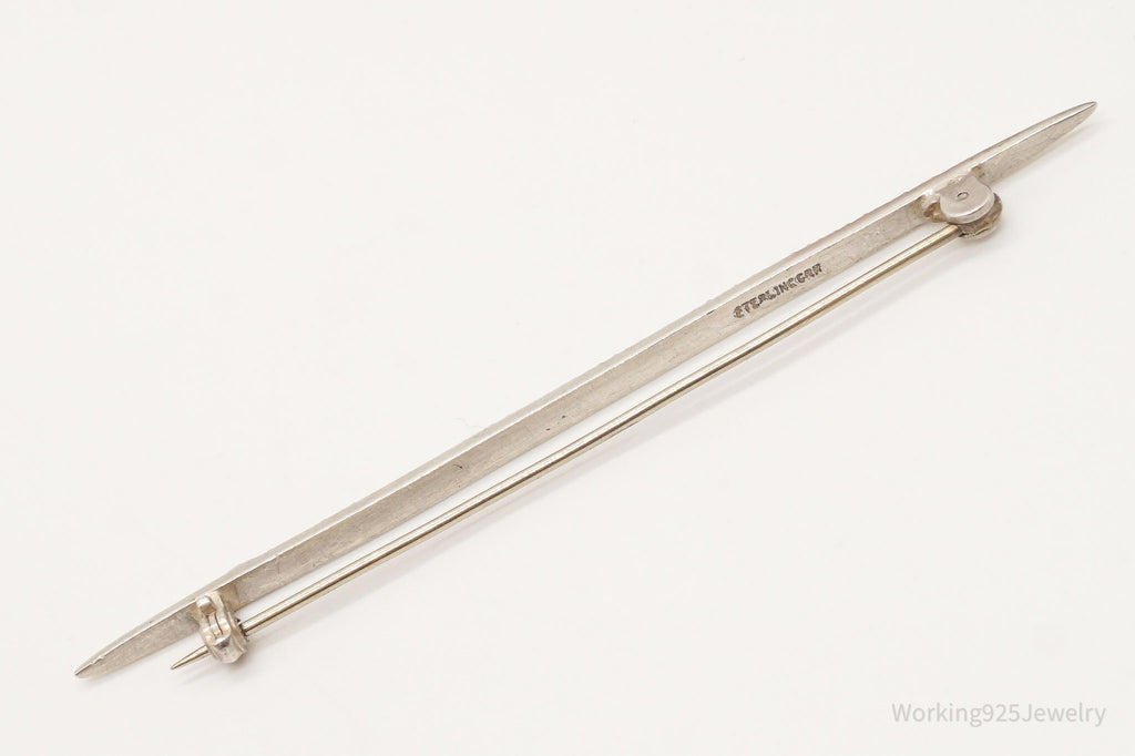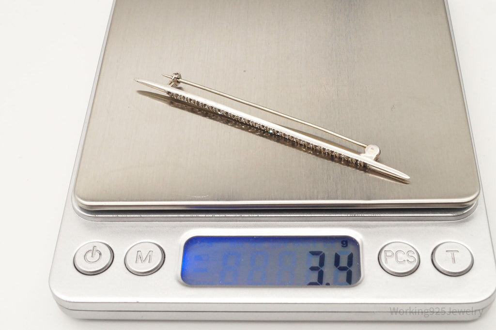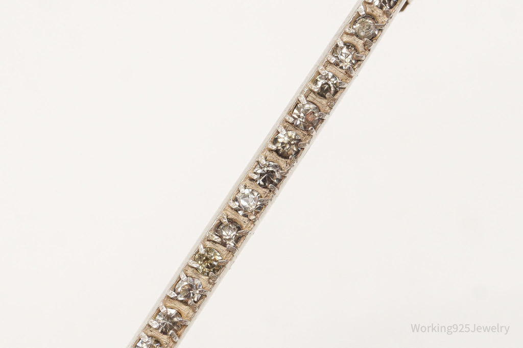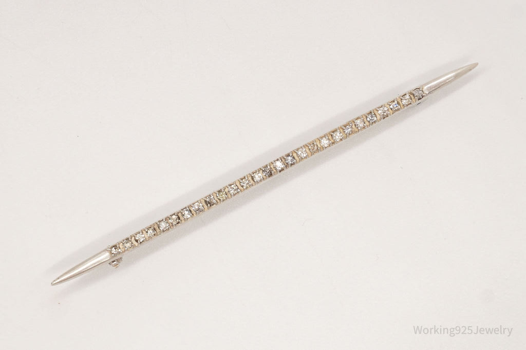 Antique Victorian Rhinestone Sterling Silver Brooch Pin Bar