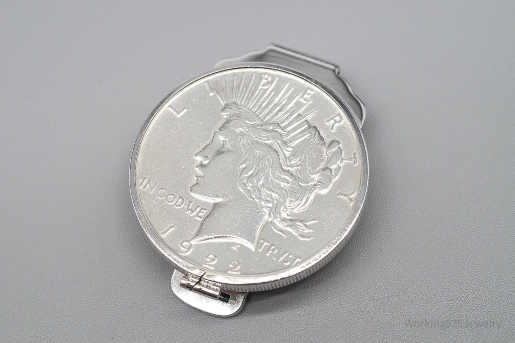 Antique Vintage Anson 1922 Peace Silver Dollar Coin Sterling Silver Money Clip