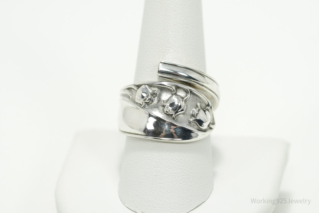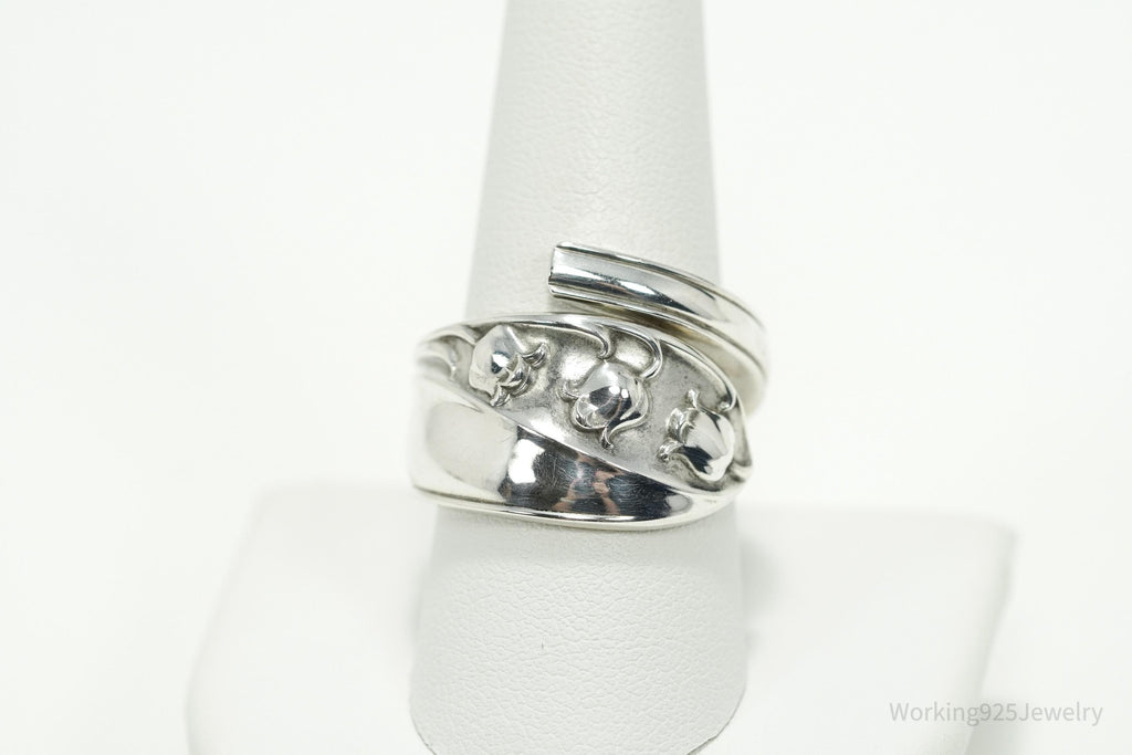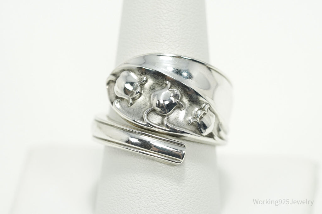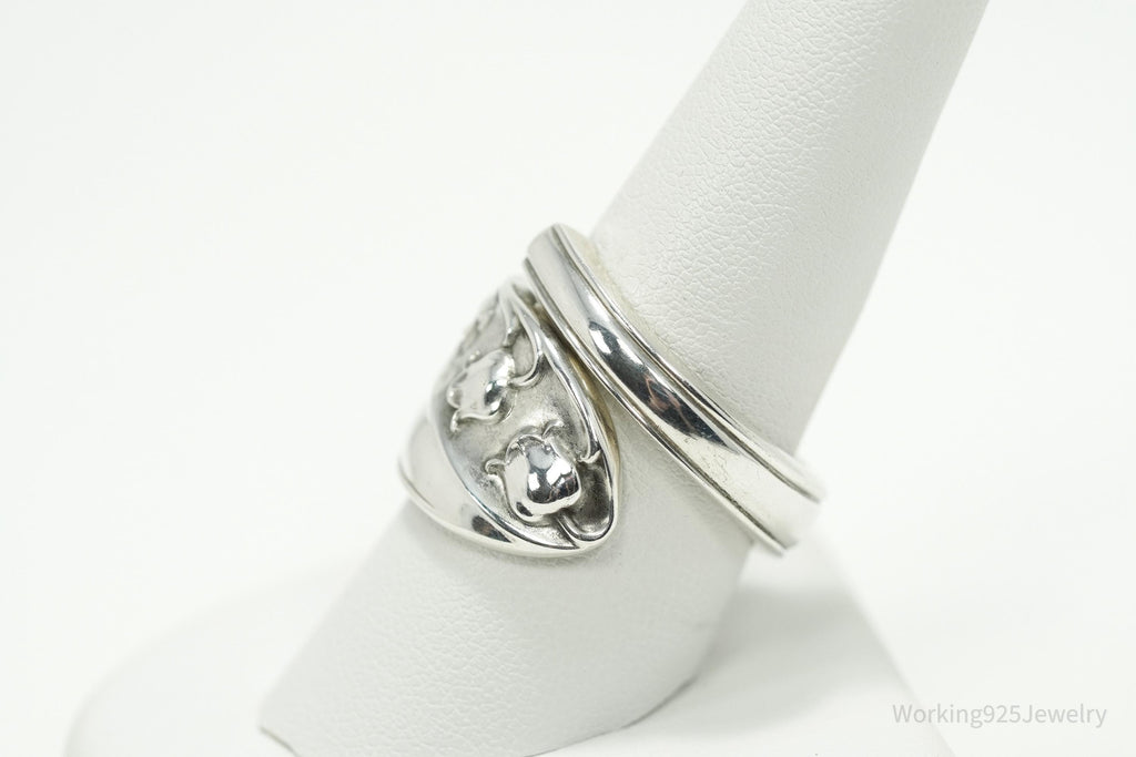 Antique Vintage Lily Of The Valley Sterling Silver Spoon Ring - Size 9.75
