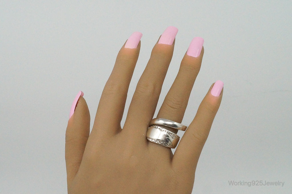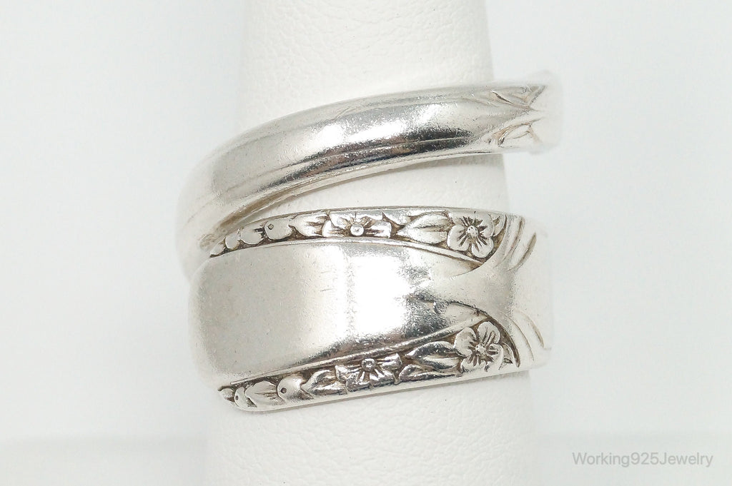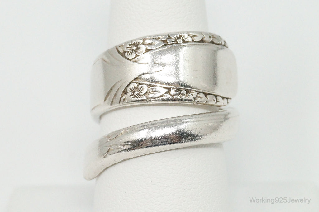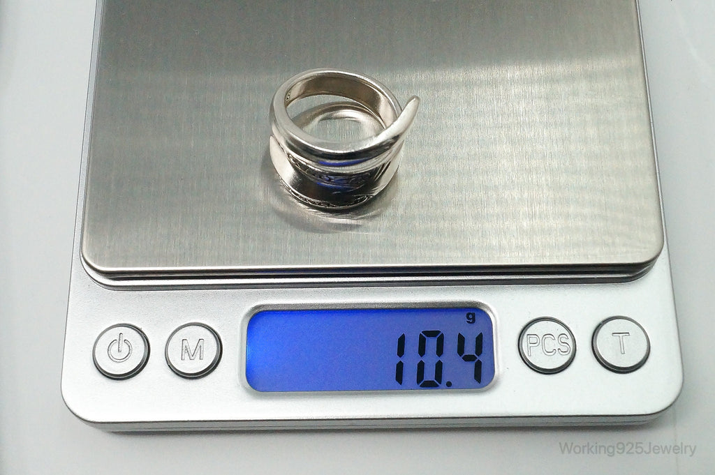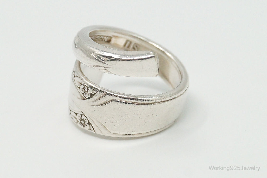 Antique WM Rogers & Son Silver Plated Floral Spoon Ring Adjustable Size 8.5