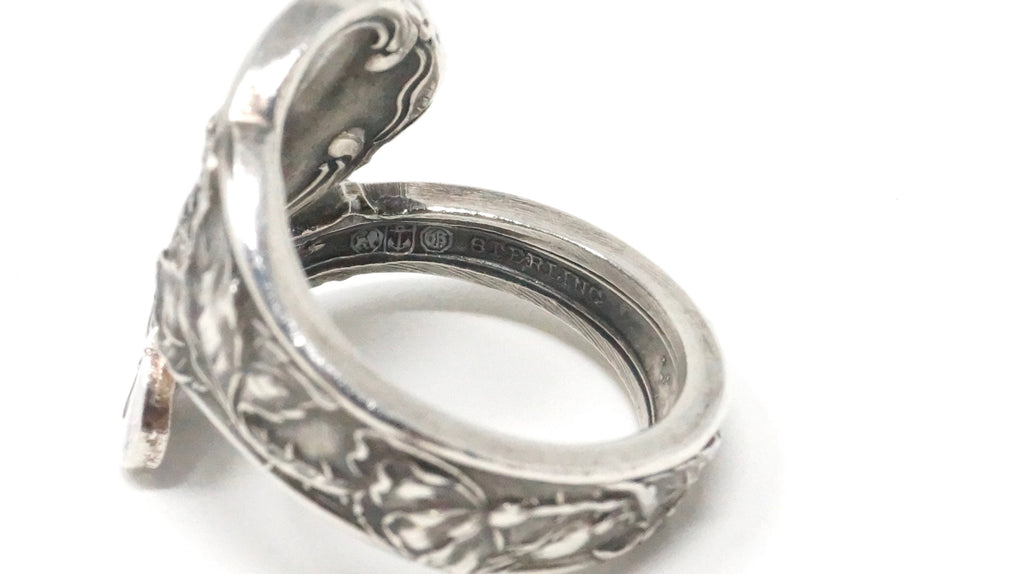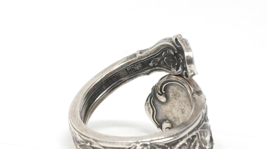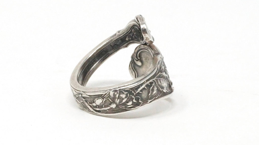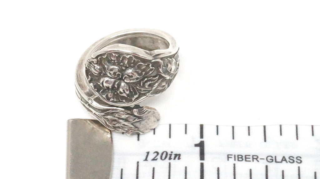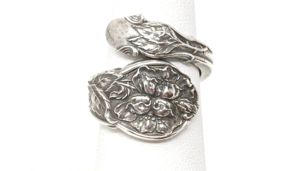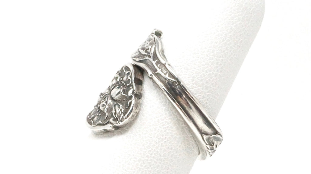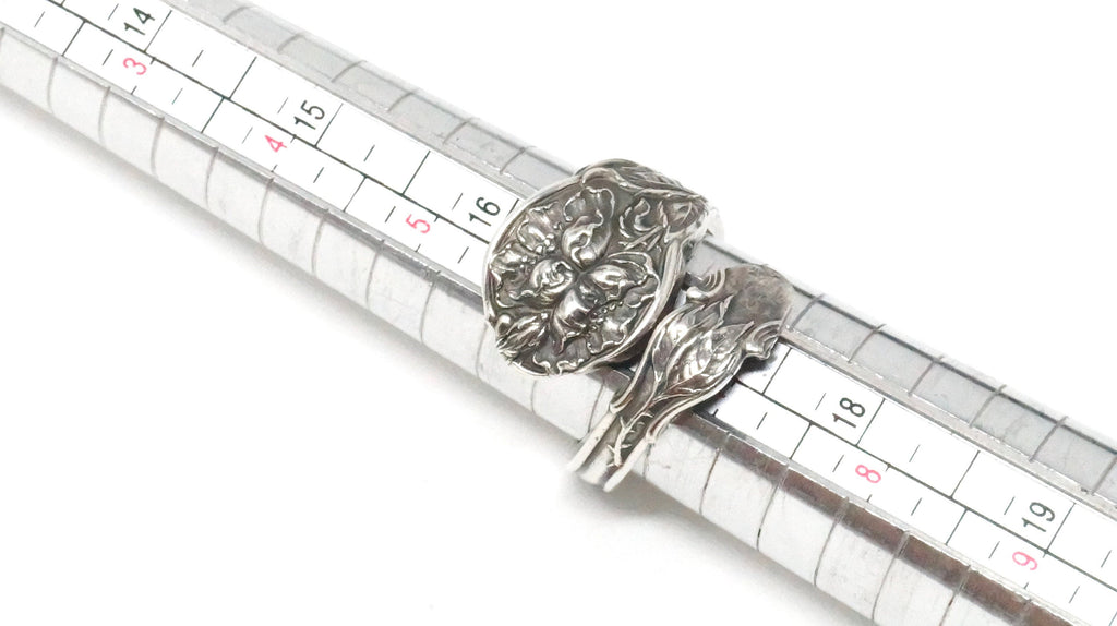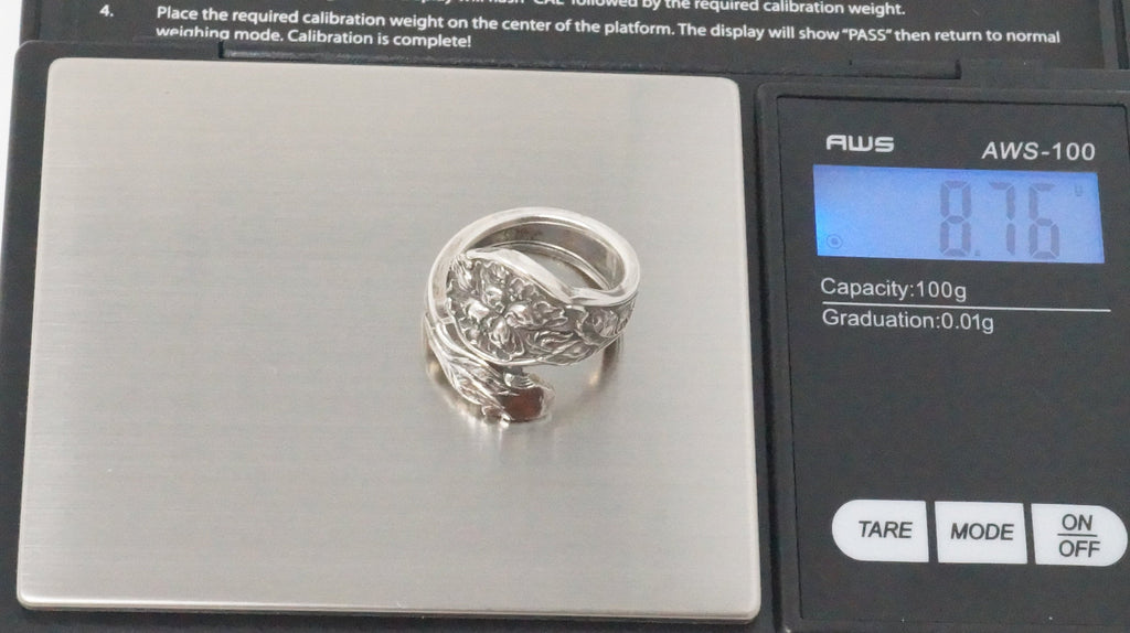 Atq English Art Nouveau Floral Repousse Wrap Sterling Silver Spoon Ring Sz 6.5