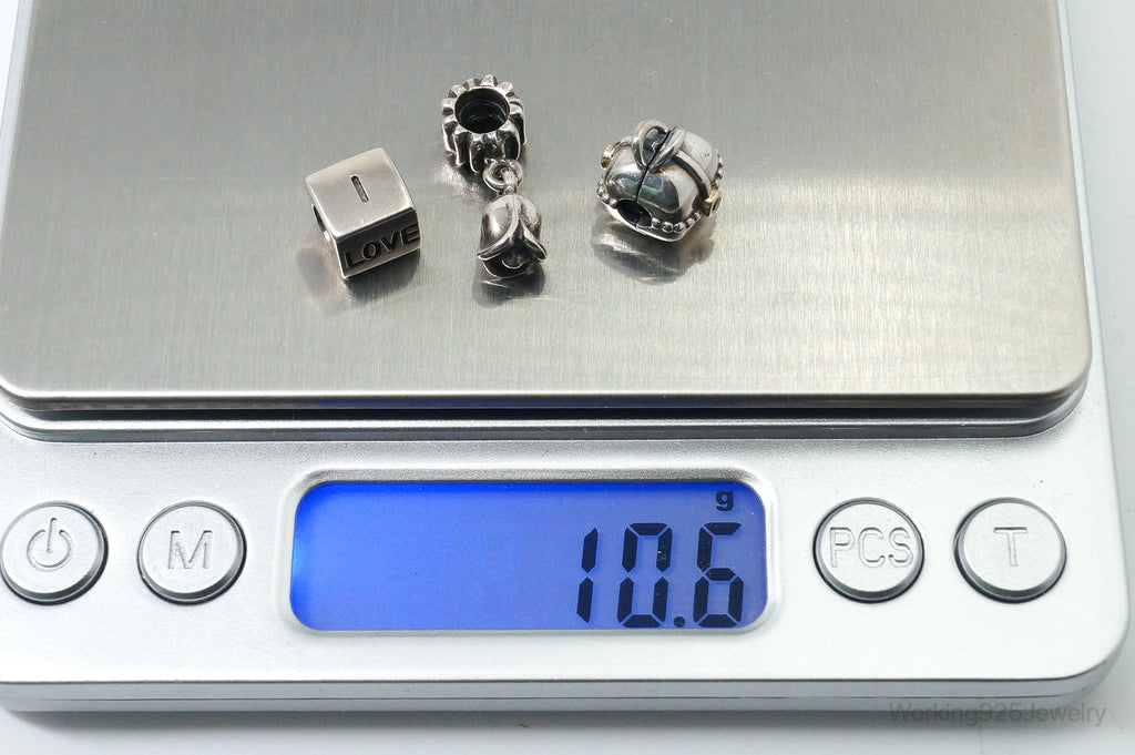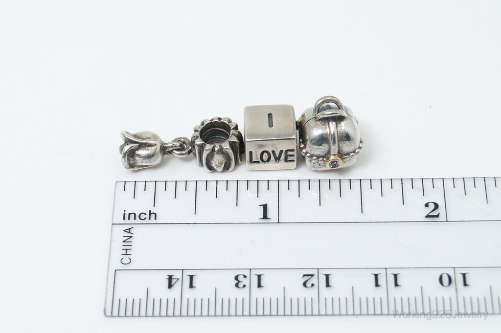 Authentic Designer Pandora ALE Love Charms Sterling Silver & Gold Charm Set