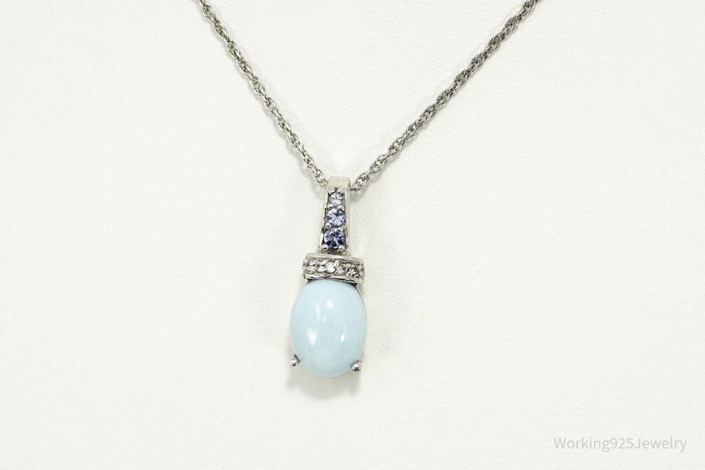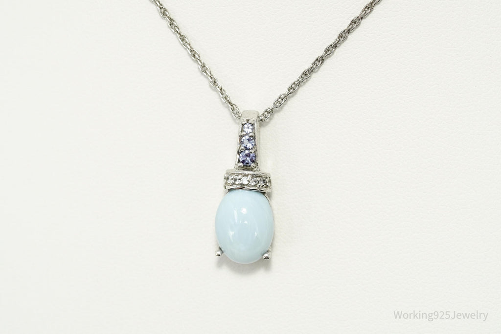 BBJ Blue Larimar, Tanzanite, And White Topaz Sterling Silver Necklace 18"
