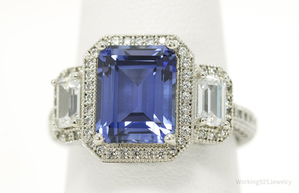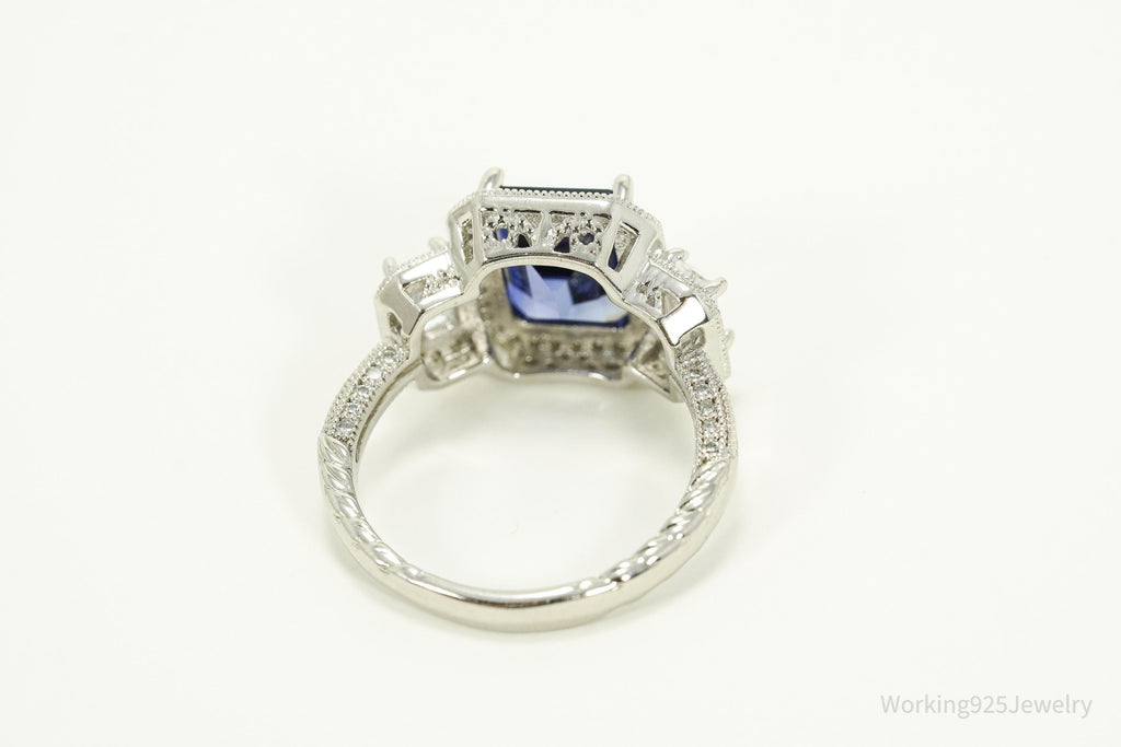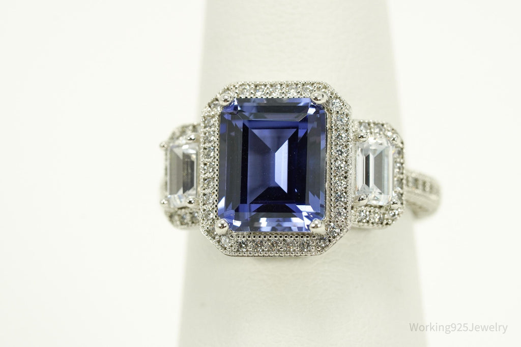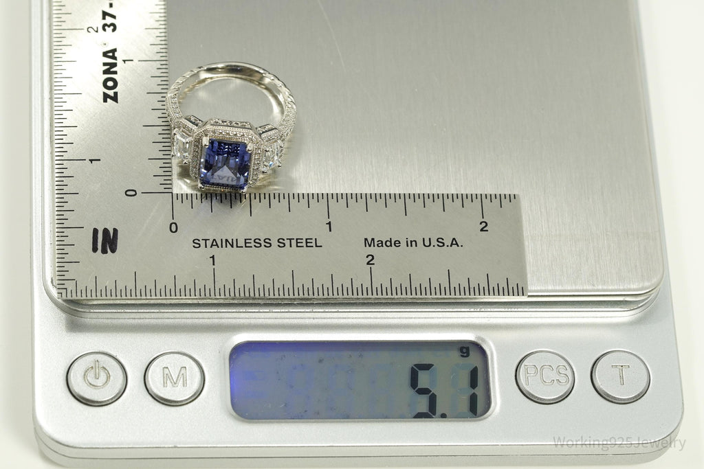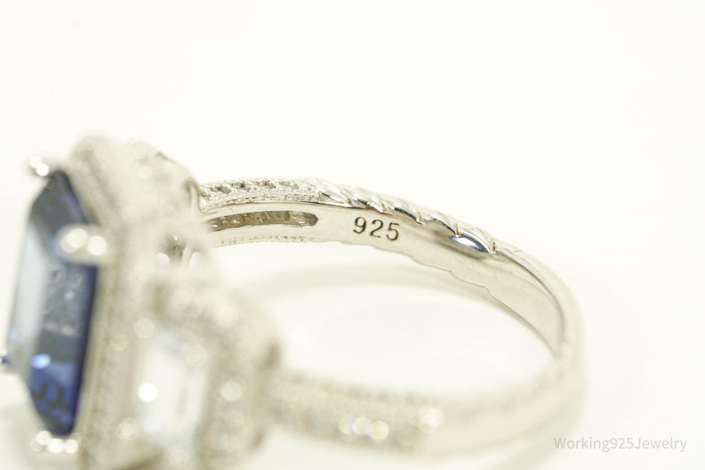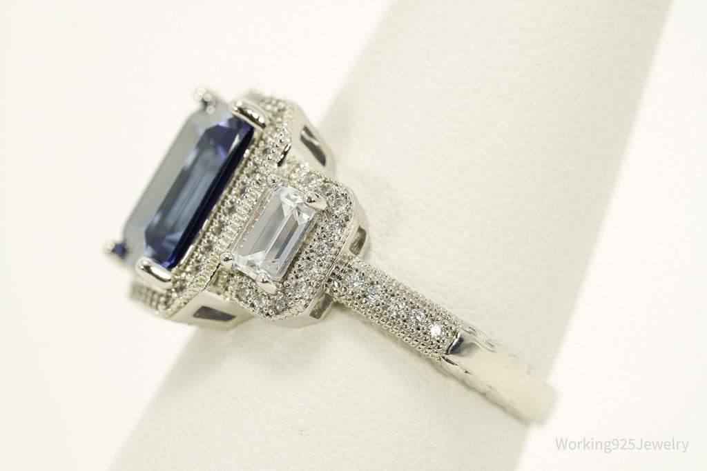 Blue Lab Sapphire & White Cubic Zirconia Sterling Silver Ring - Size 7.25