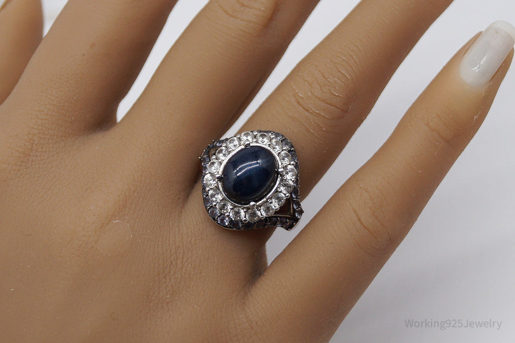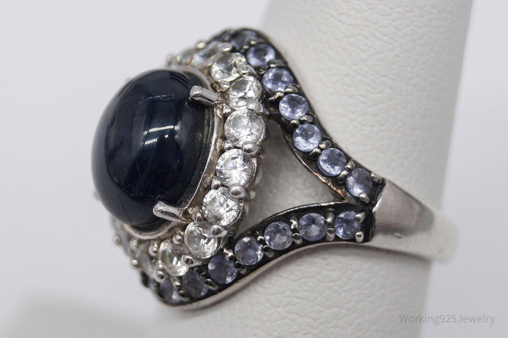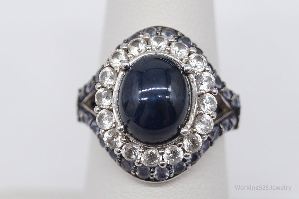 Blue Star Sapphire Iolite White Topaz Sterling Silver Ring - Size 7