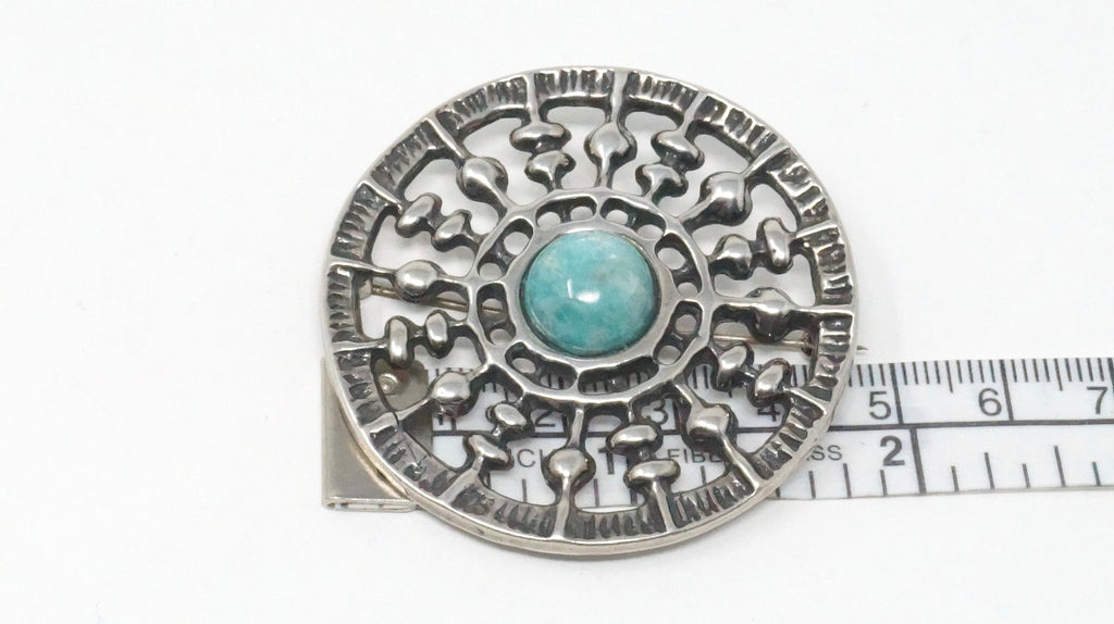David Andersen UNI Sun Chariot Amazonite 925S Sterling Silver Brooch Pendant