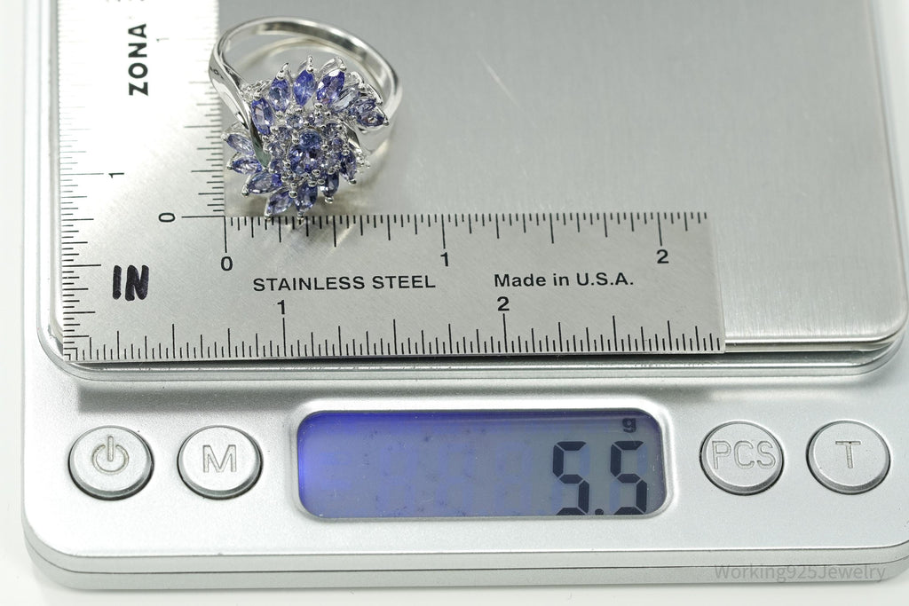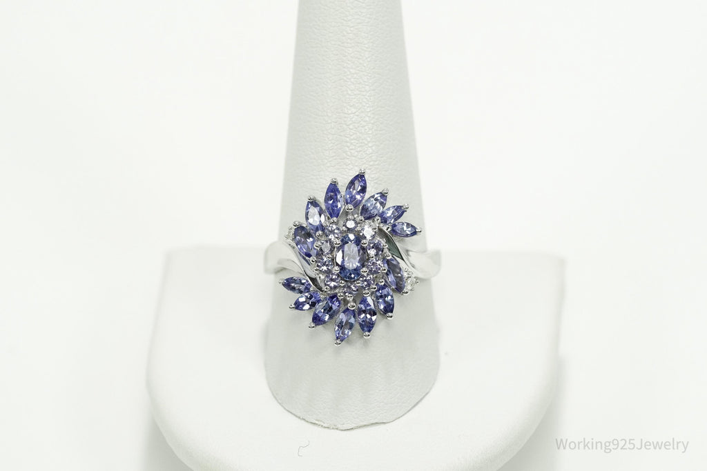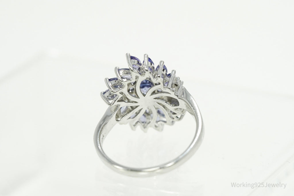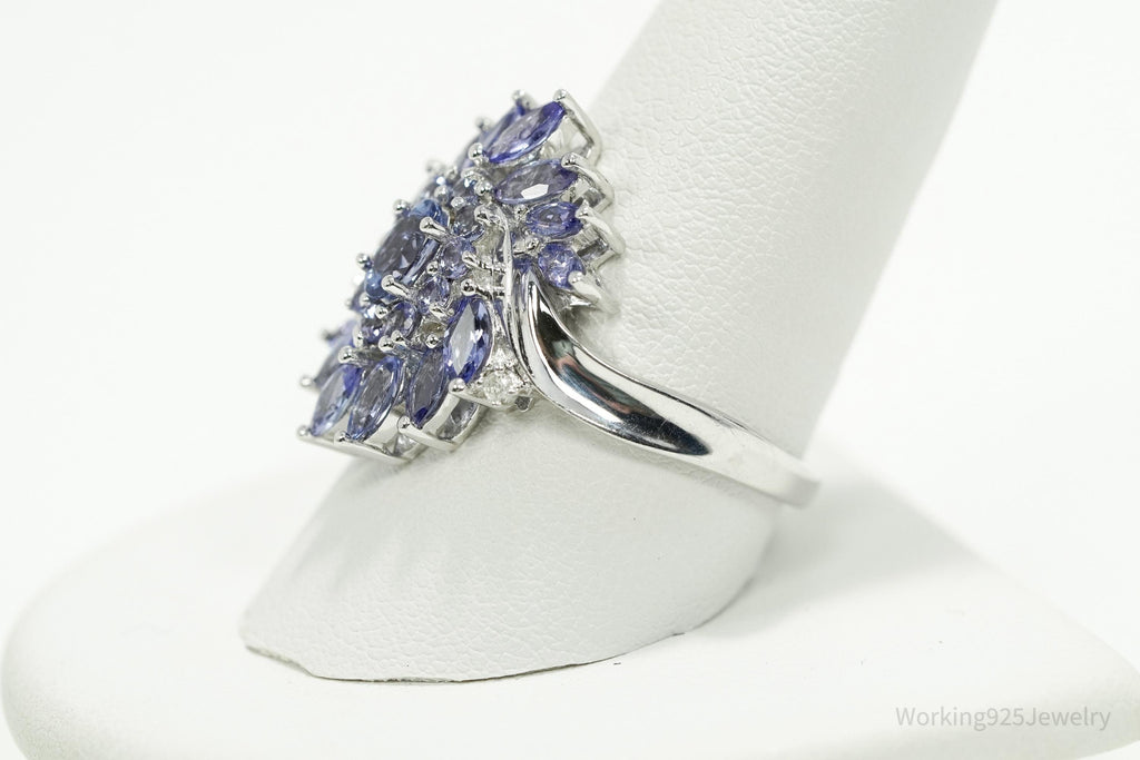 Designer JS Tanzanite & Diamond Sterling Silver Ring Size 10.25