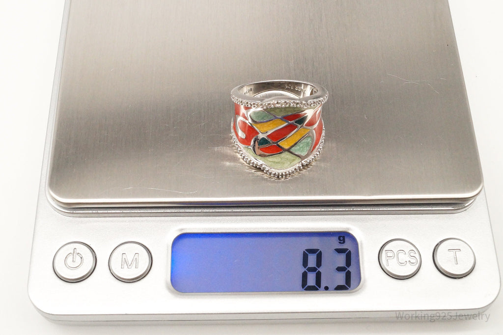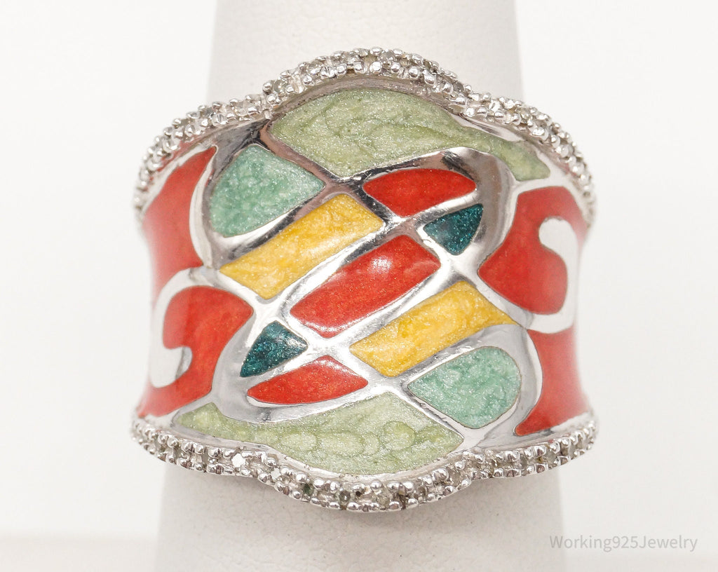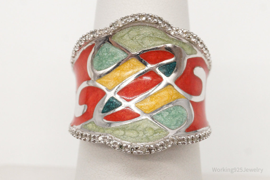 Designer JWBR Diamond Colorful Enamel Sterling Silver Ring - Size 6.75