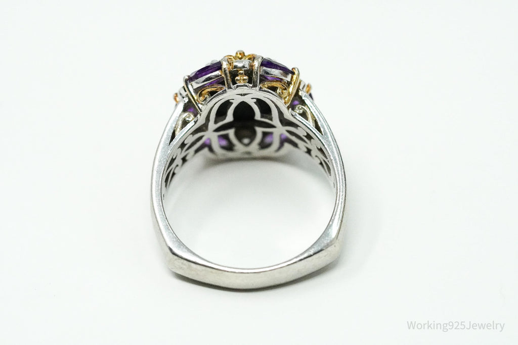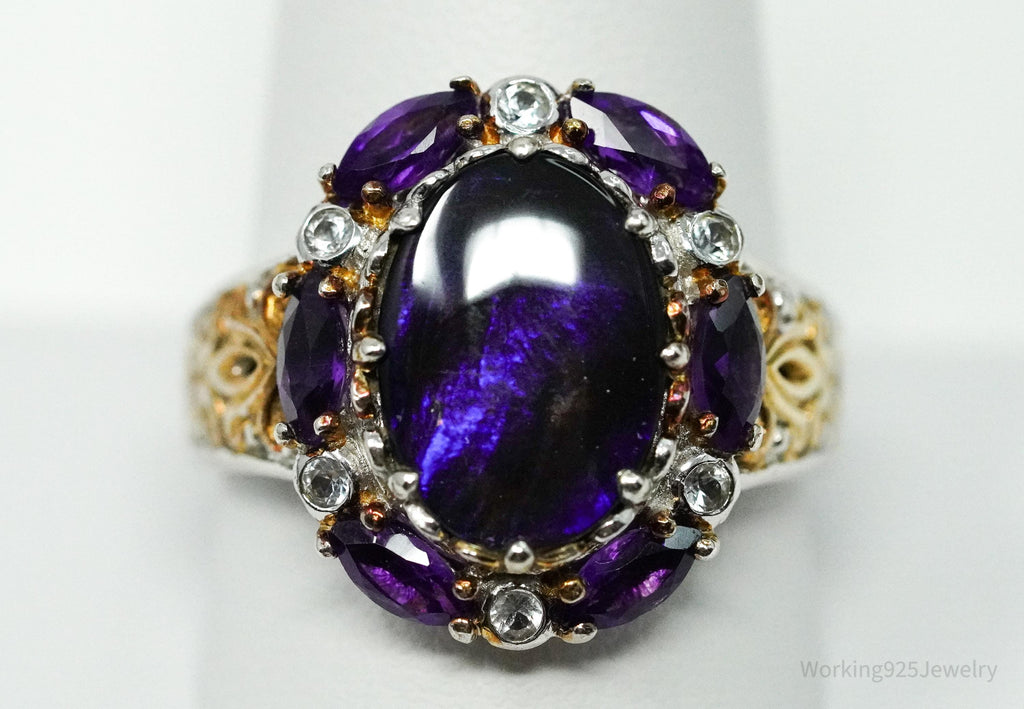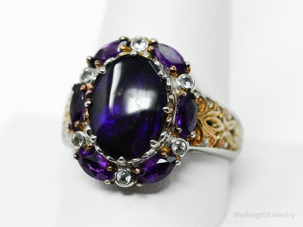 Designer Michael Valitutti "Gems En Vogue" 18K Yellow Gold, Palladium, And Sterling Silver Ring Size 11 - Iridescent Purple Stone - Amethyst - White Sapphire