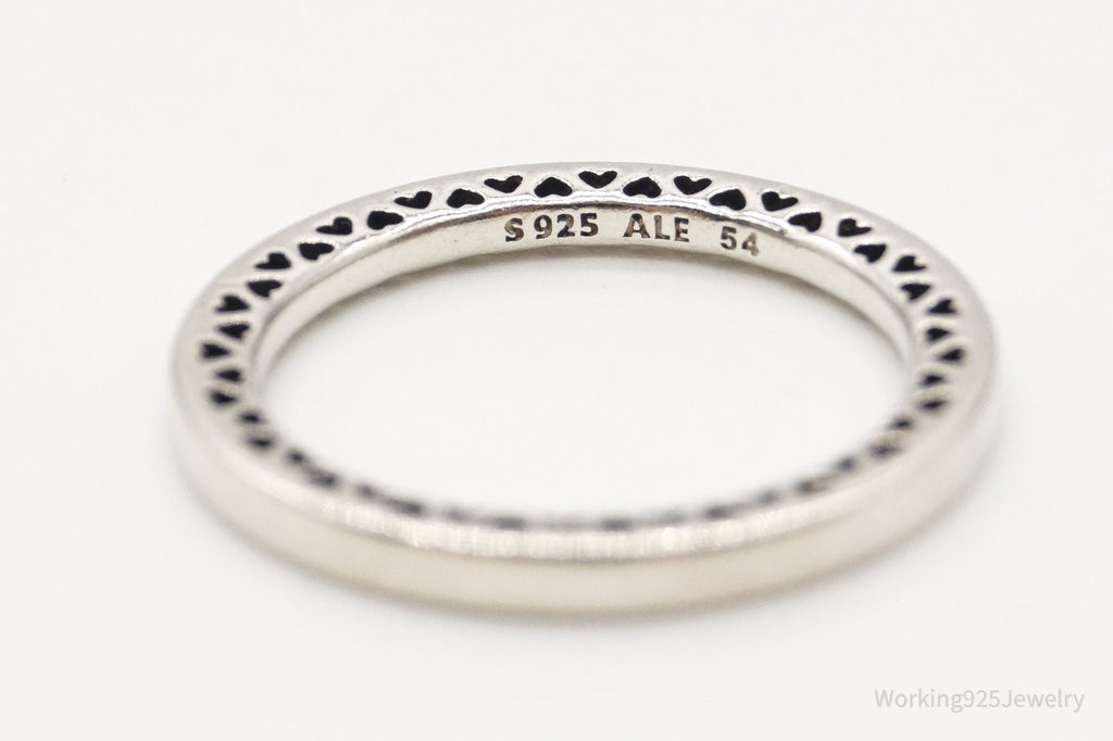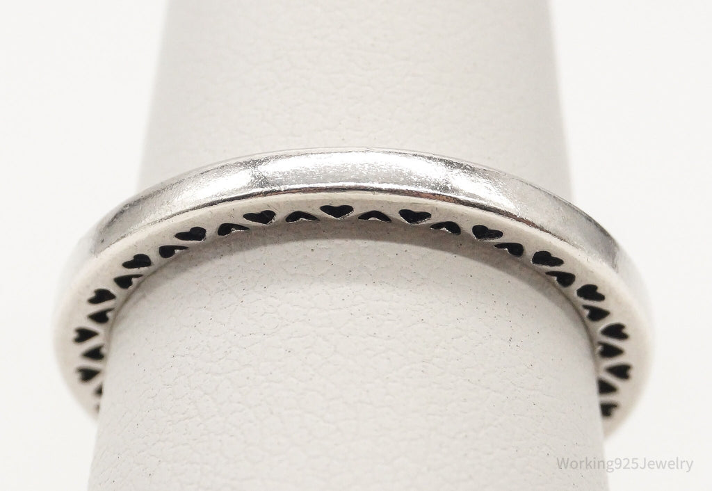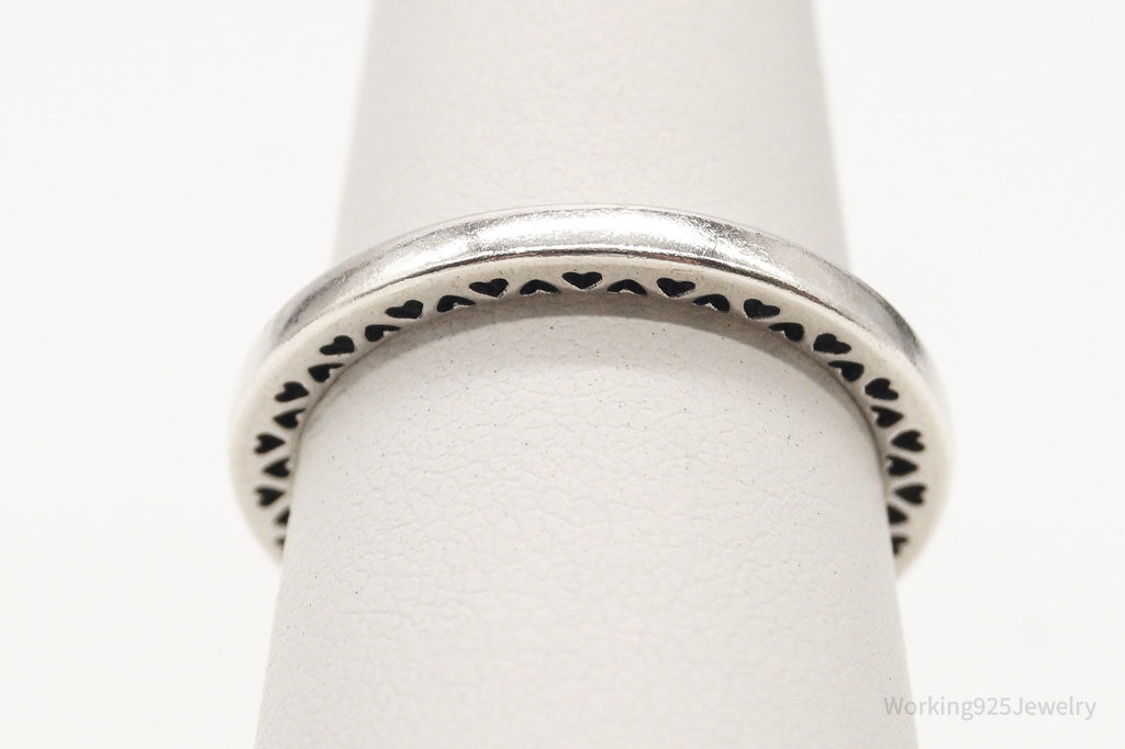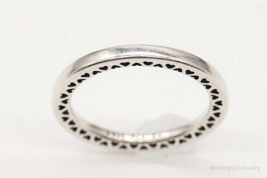 Designer Pandora Hearts Pattern Sterling Silver Band Ring - Size 6.75