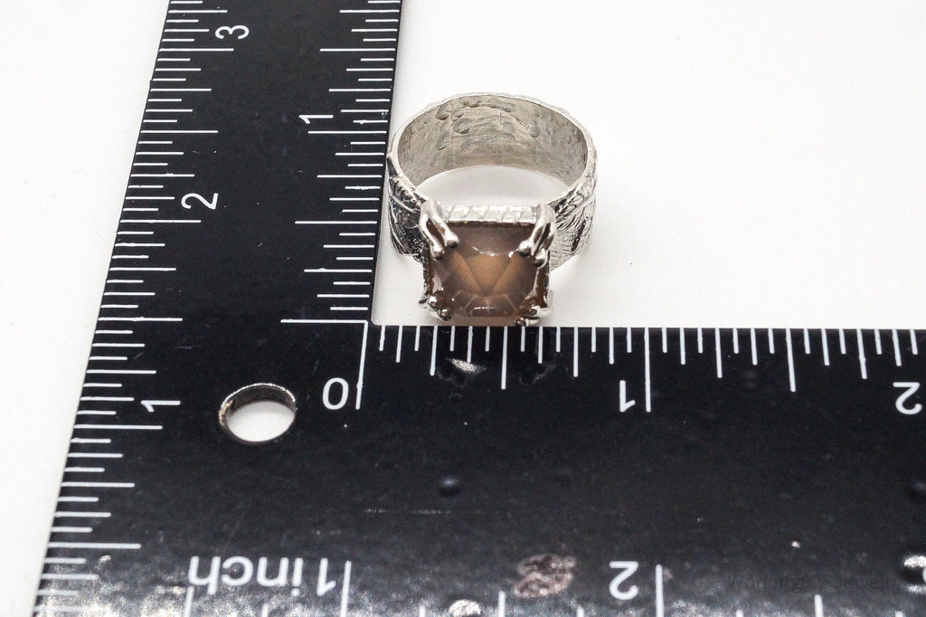 Designer Peach Chalcedony Leaves & Vines Sterling Silver Ring - Size 7.25