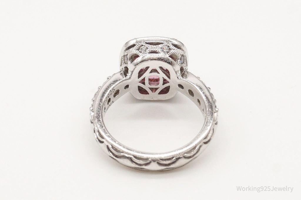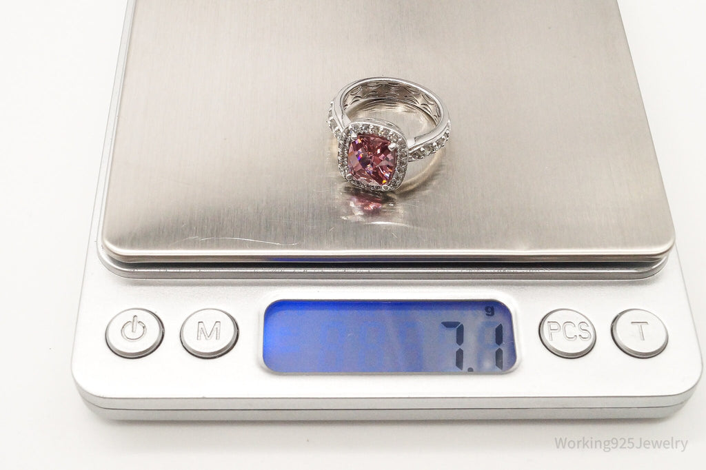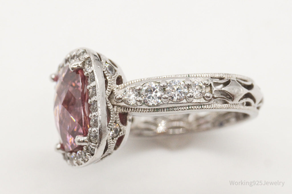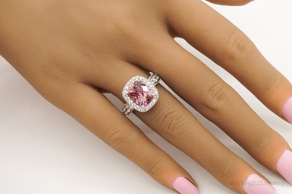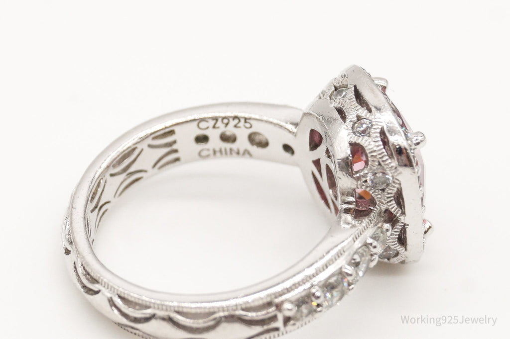 Designer Pink & White Cubic Zirconia Sterling Silver Ring - Size 7