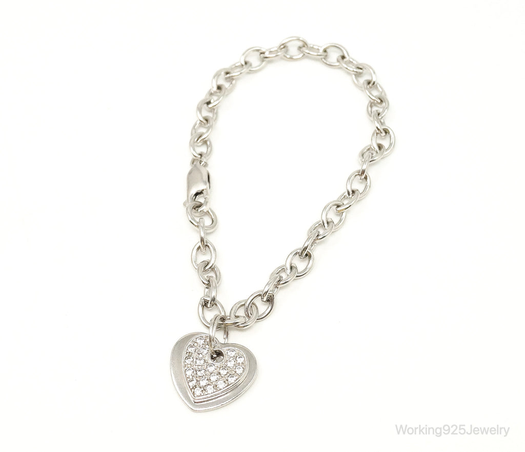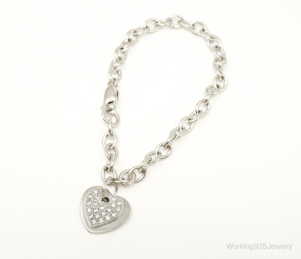 Designer Ross Simons Cubic Zirconia Heart Sterling Silver Bracelet