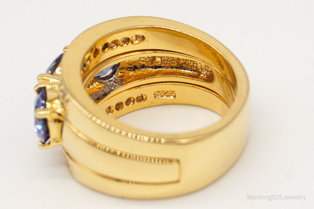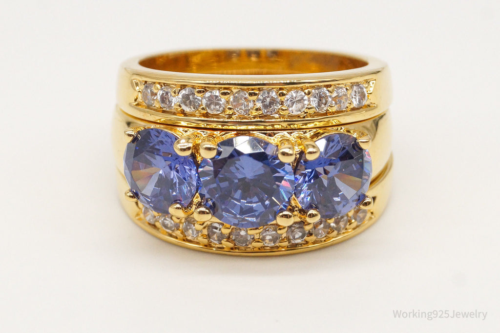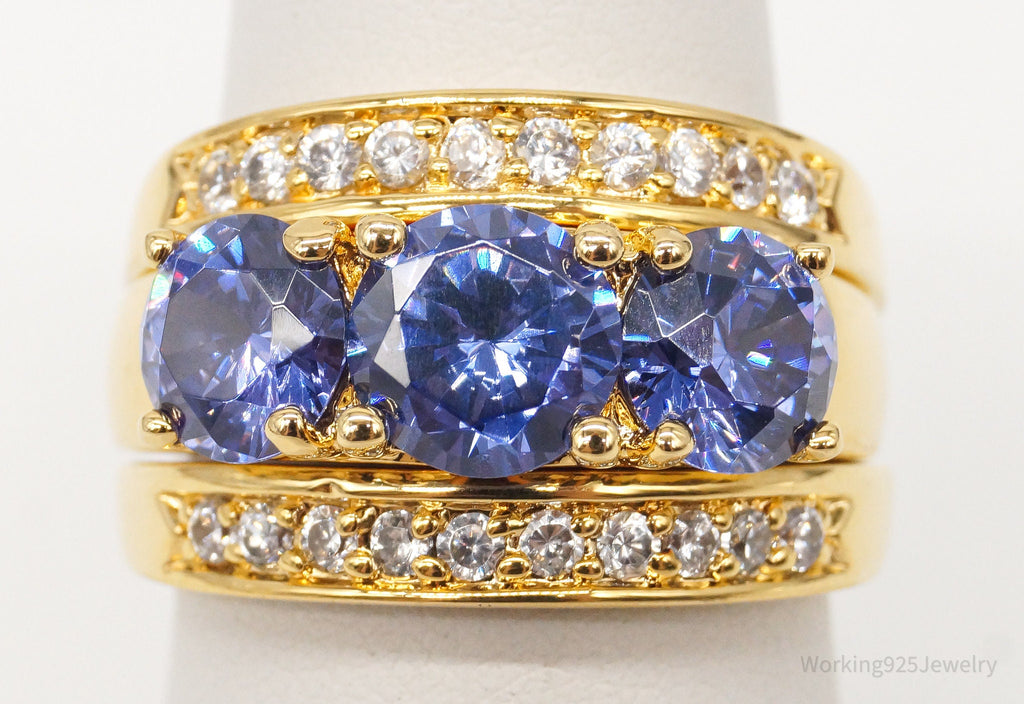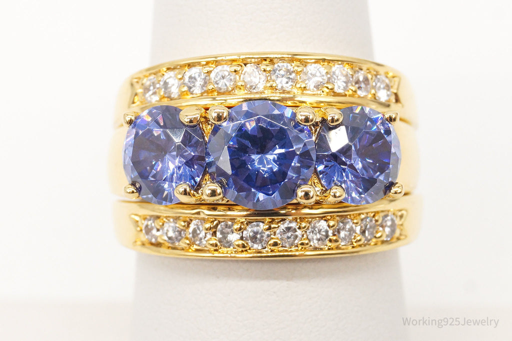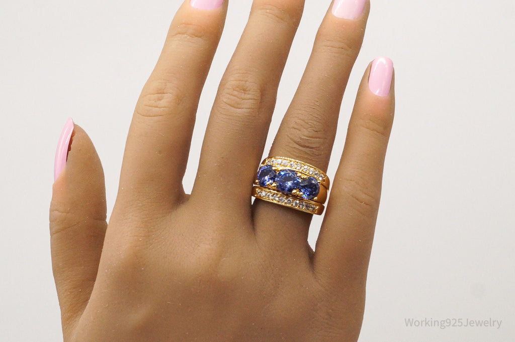 Designer RP Blue & White Cubic Zirconia Gold Vermeil Sterling Silver Ring Size 7