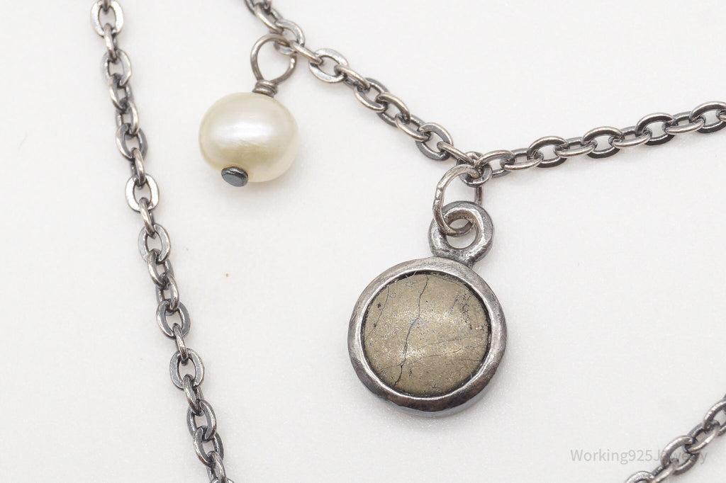- Pearl - Pyrite - Sterling Silver