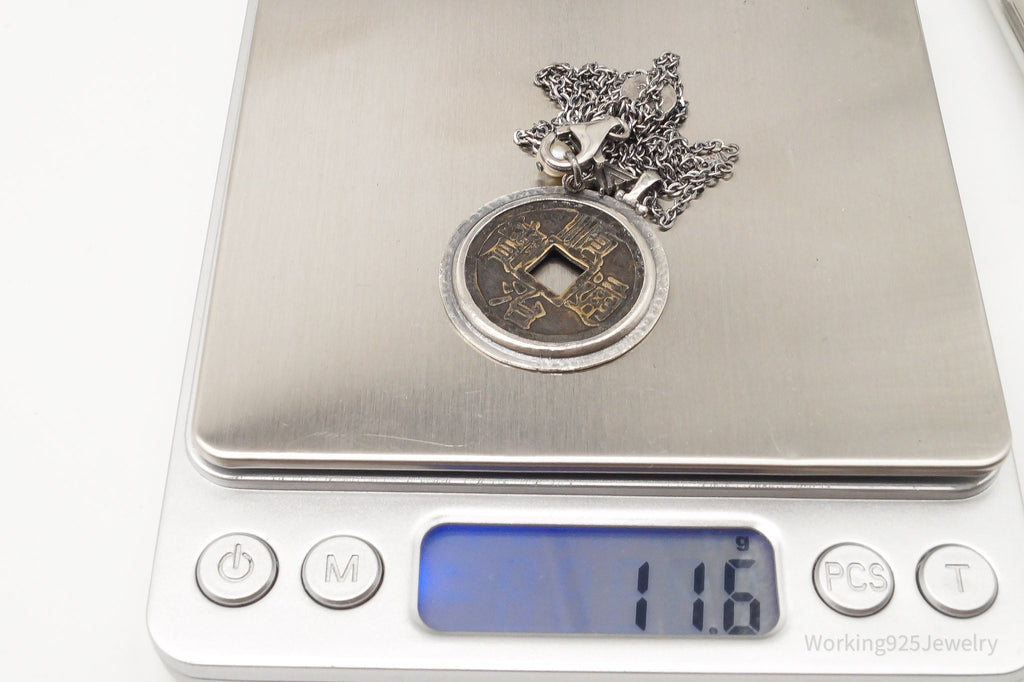Designer Silpada Brass Chinese Coin Replica Sterling Silver Retired Necklace