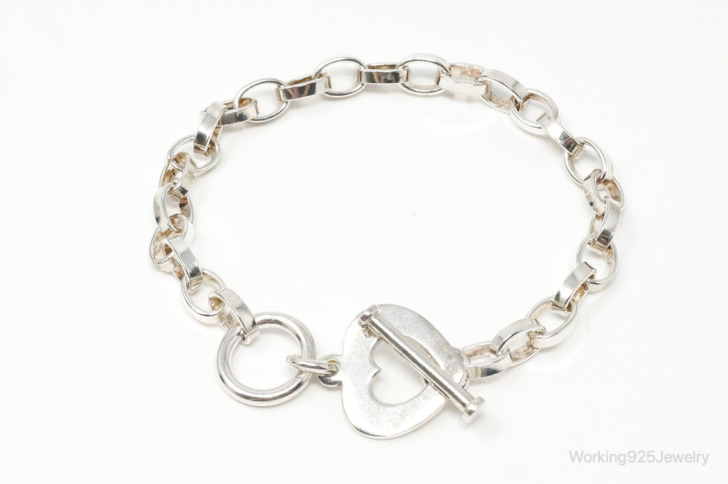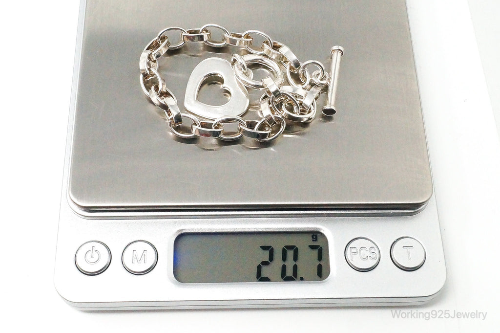 Designer Silpada Retired Heart Chain Link Sterling Silver Toggle Bracelet