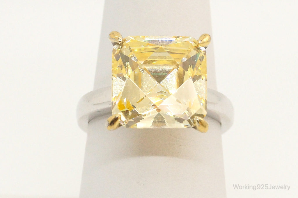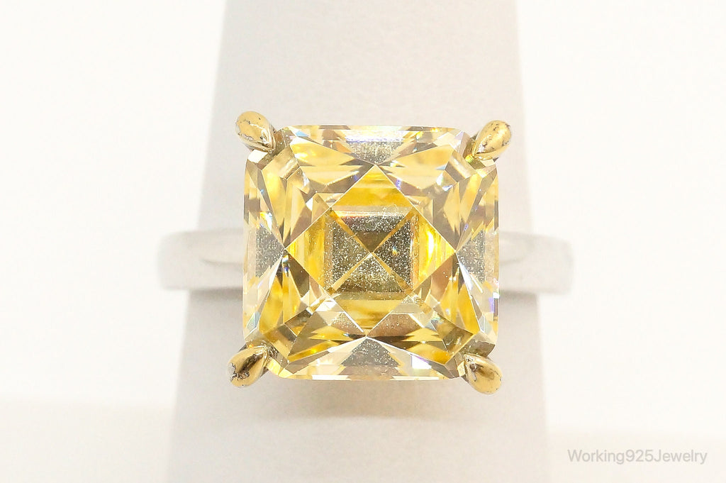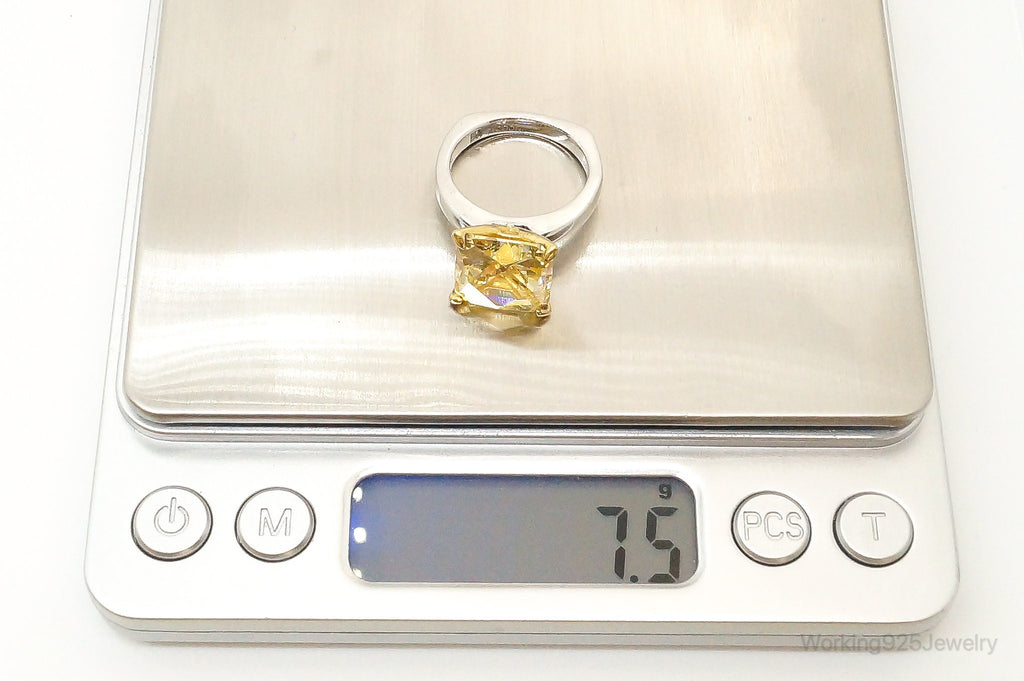 Designer Tycoon Yellow & White Simulated Diamonds Sterling Silver Ring - Size 7