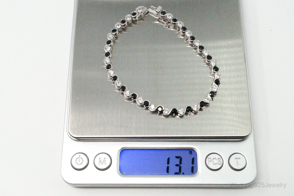 Designer V3 Blue Sapphire Cubic Zirconia Sterling Silver Bracelet