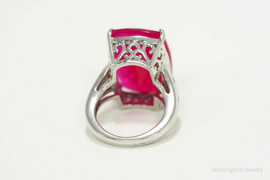 GIE Large Pink Onyx Sterling Silver Ring - Size 5