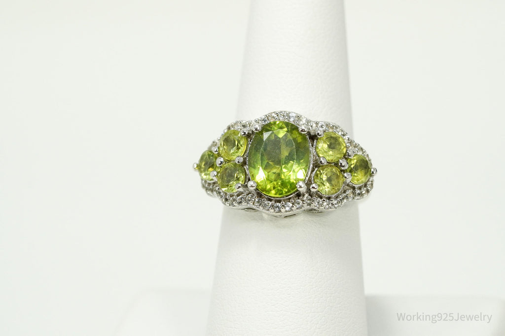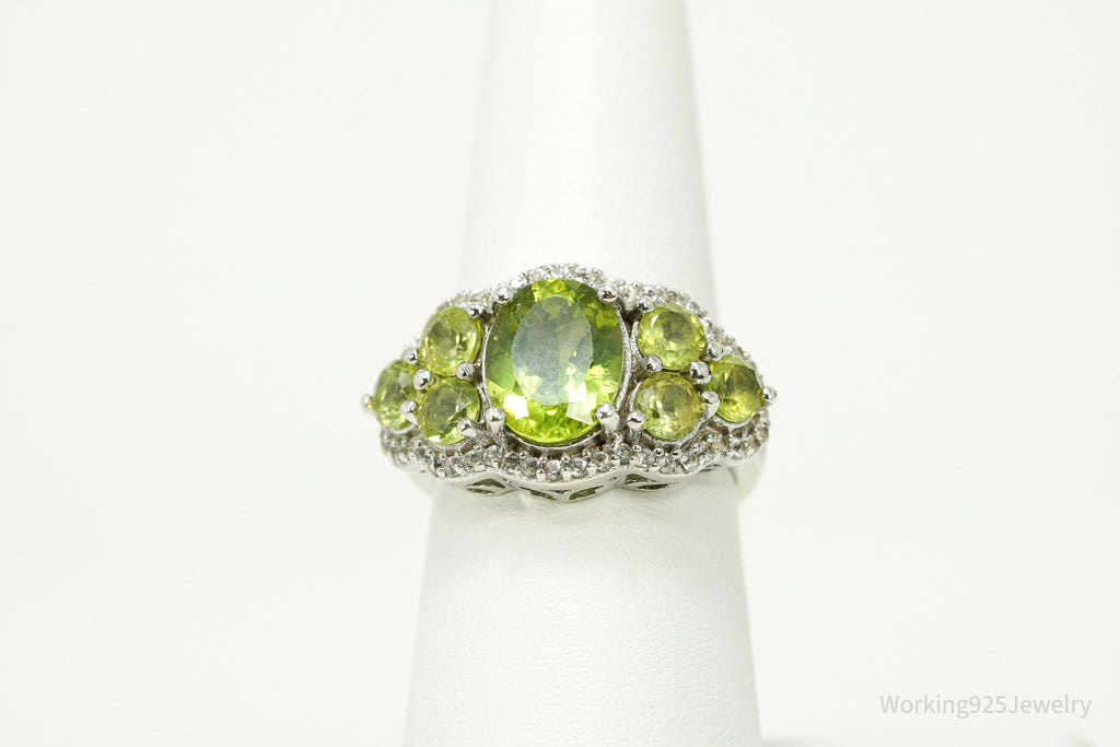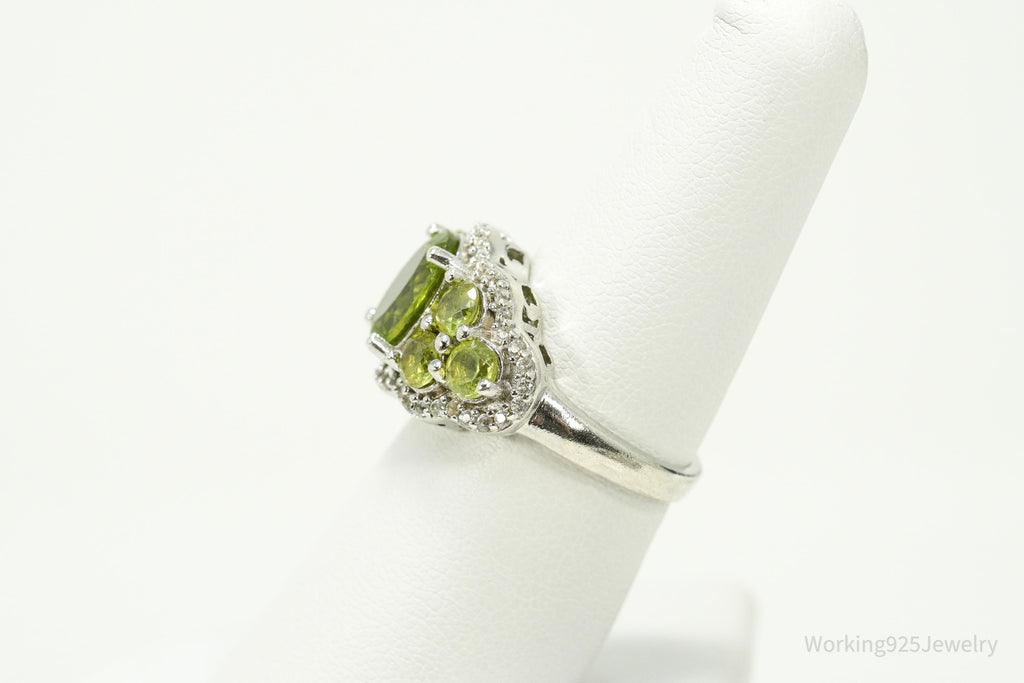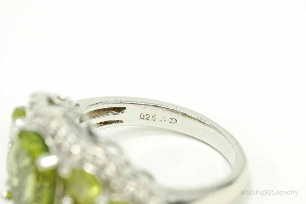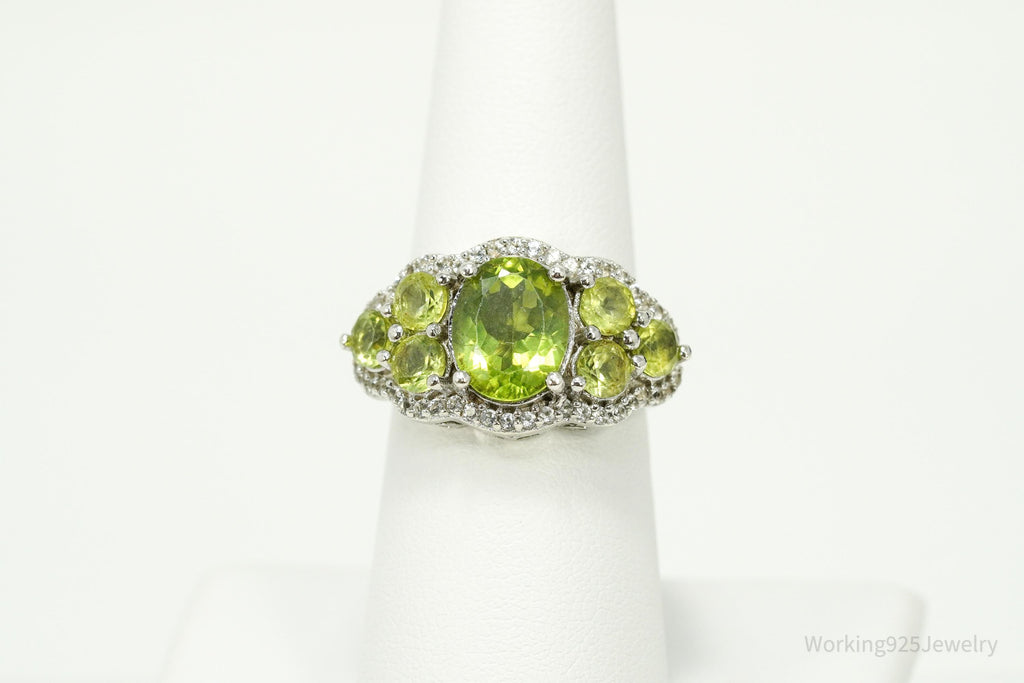 Green Peridot & White Zircon Rhodium Over Sterling Silver Ring - Size 7