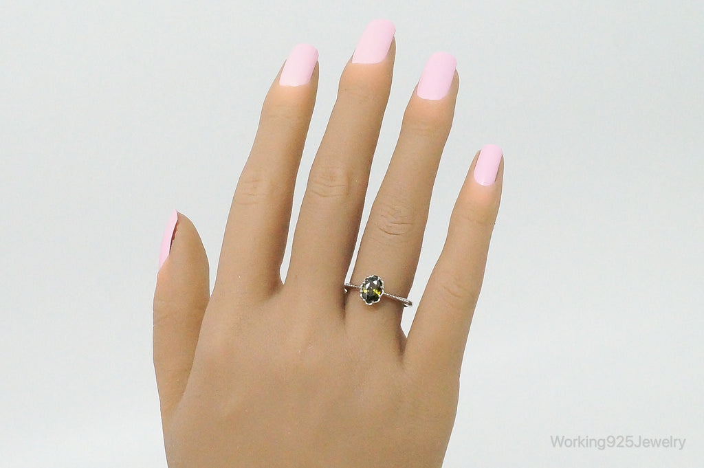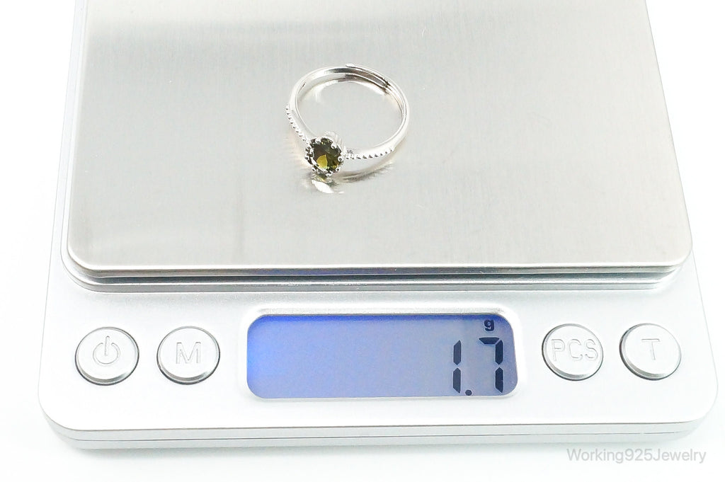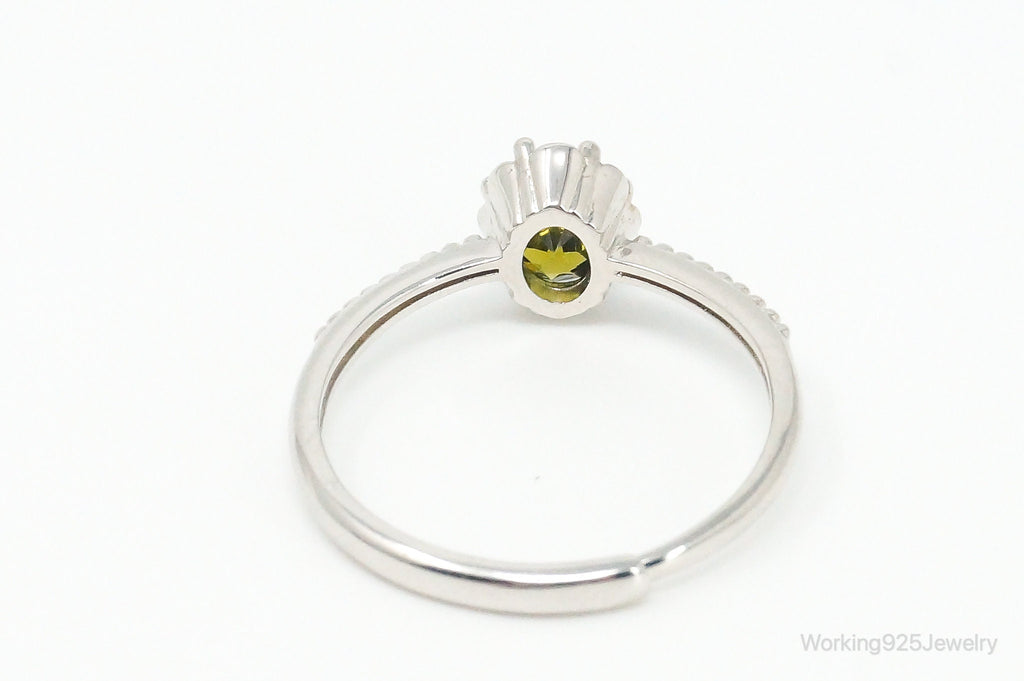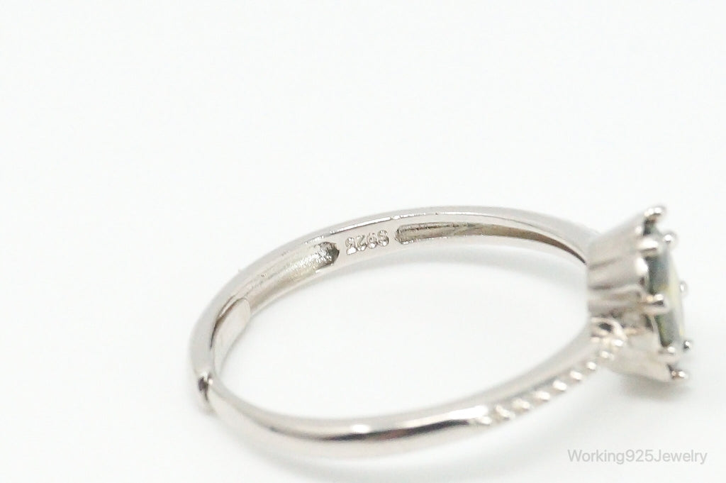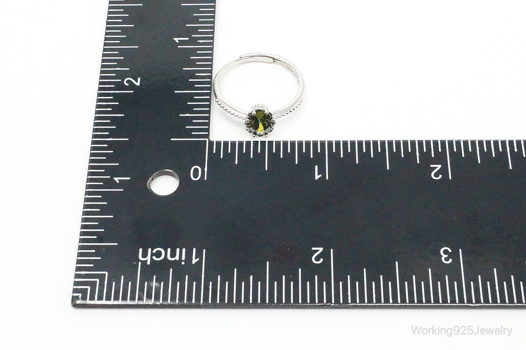 Green Sapphire Sterling Silver Ring - Size 7.5 Adjustable