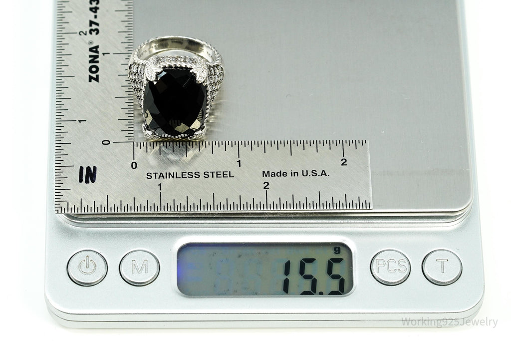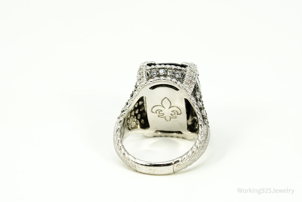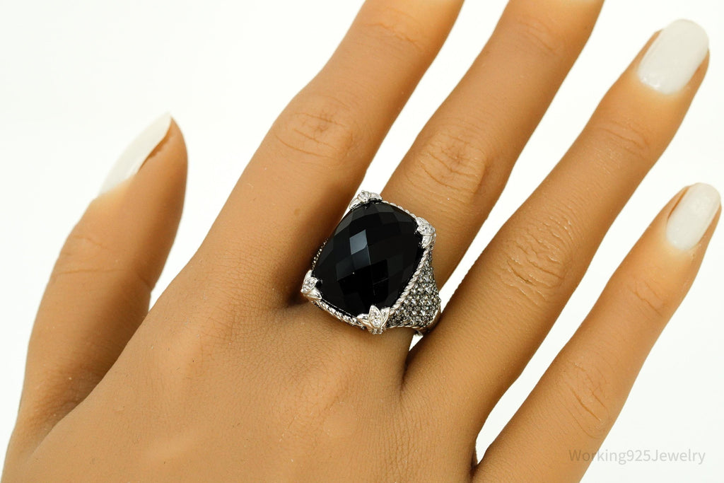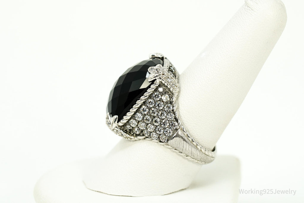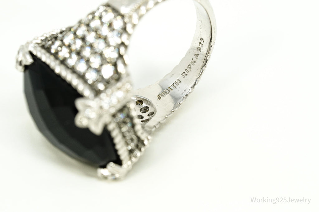 Judith Ripka Black Onyx & Cubic Zirconia Rhodium Over Sterling Silver Ring Size 9