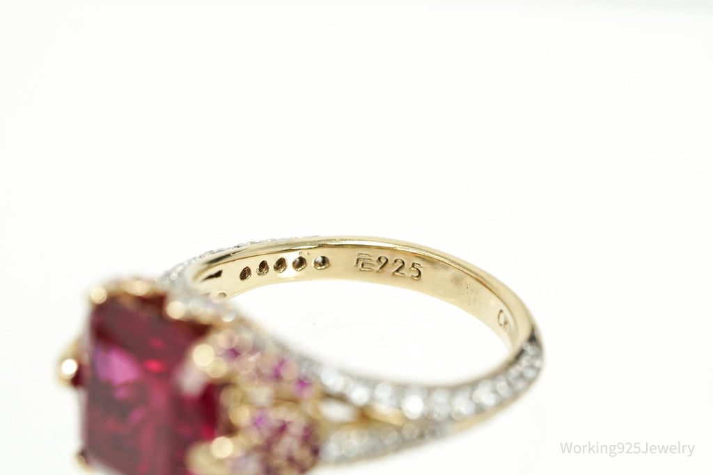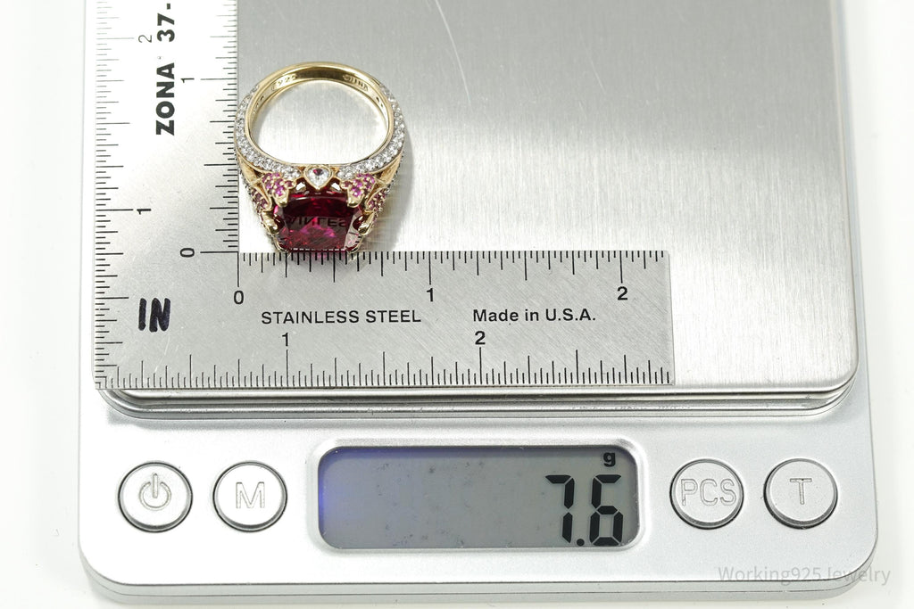 Lab Ruby Pink Tourmaline Sterling Silver Gold Vermeil Cocktail Statement Ring 8