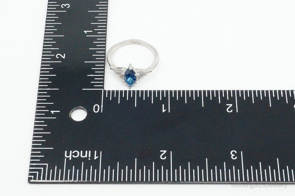 Lab Sapphire Cubic Zirconia Sterling Silver Ring - Size 7