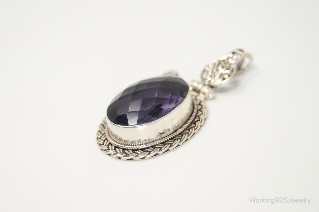 Large Amethyst Butterfly Bali Sterling Silver Necklace Pendant