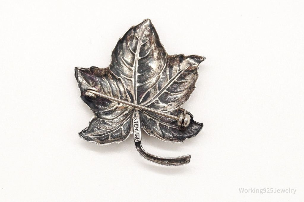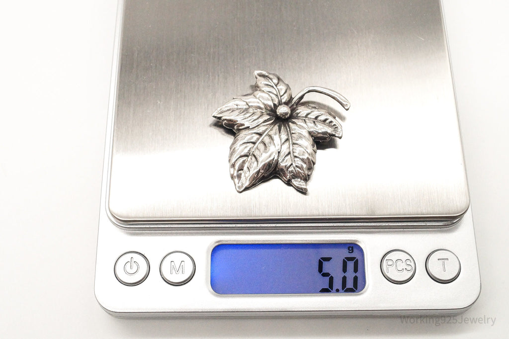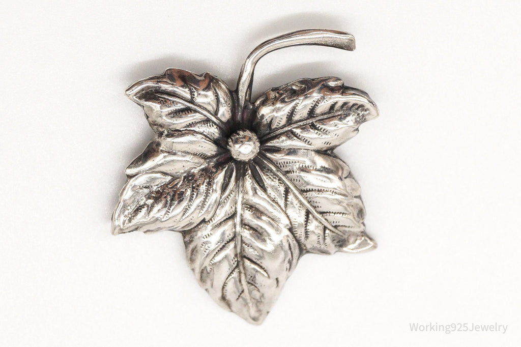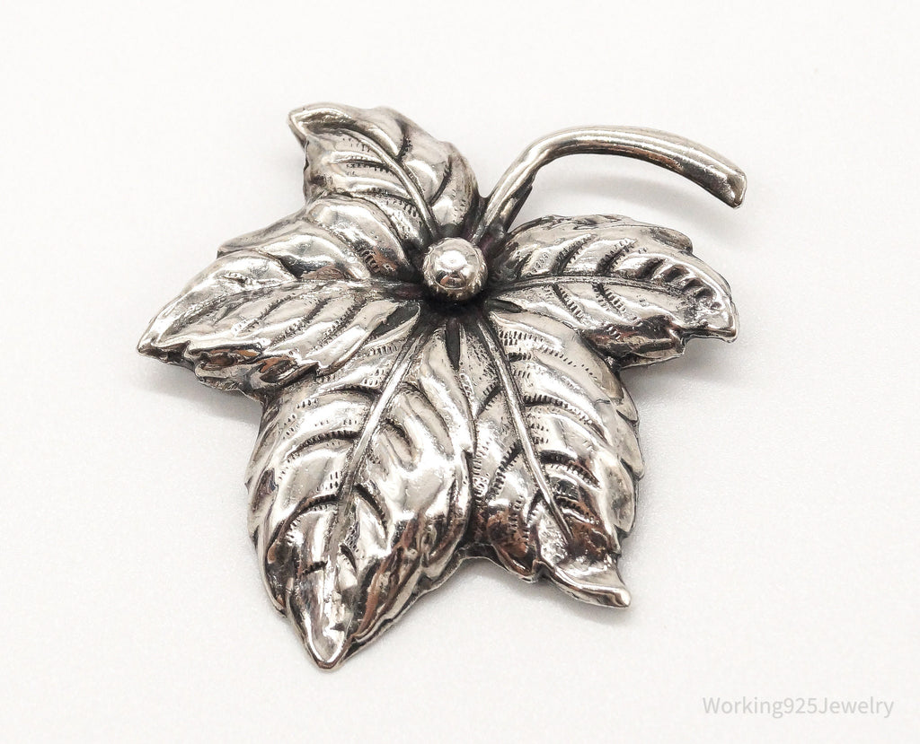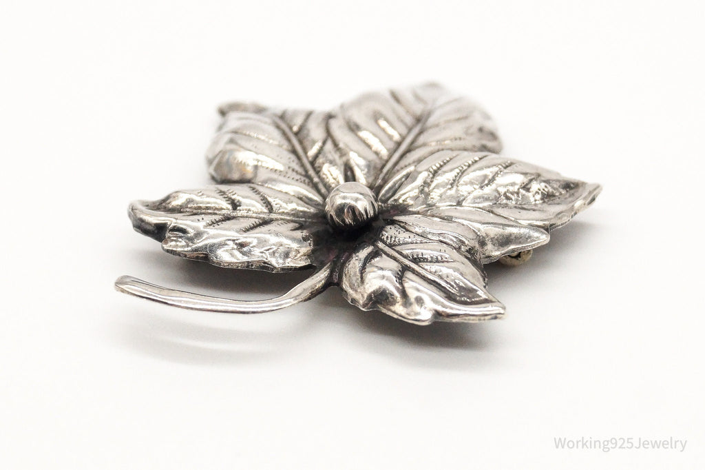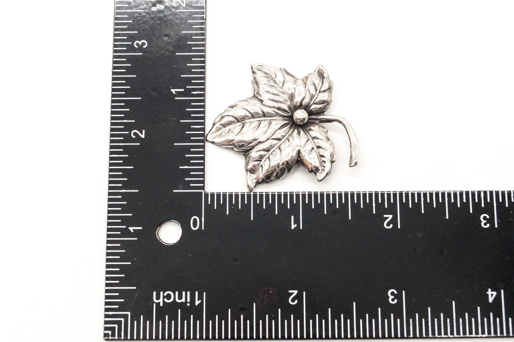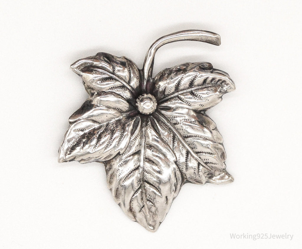 Large Antique Sterling Silver Leaf Pin Brooch