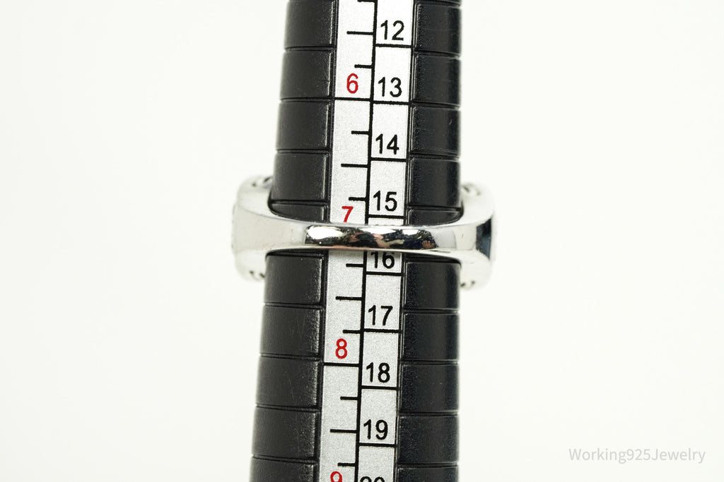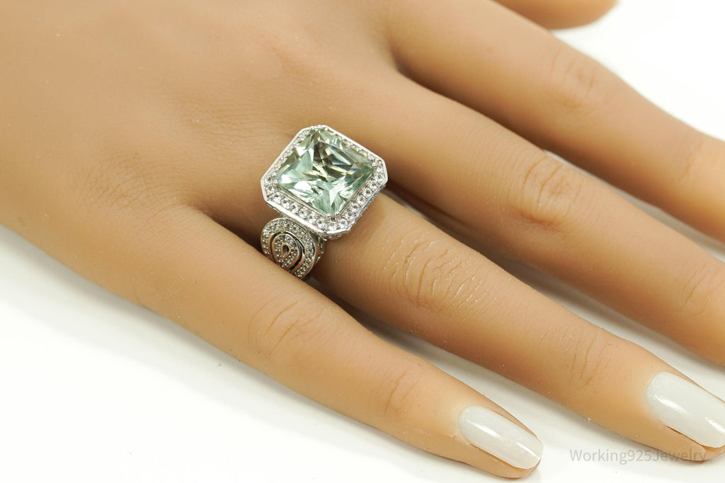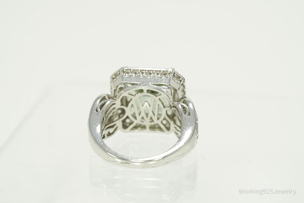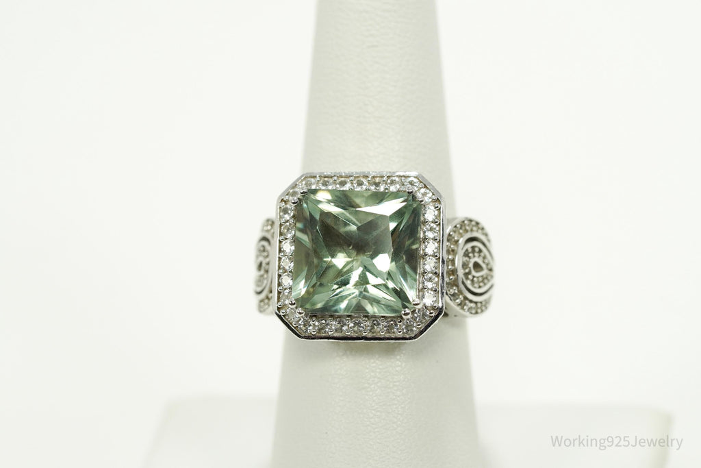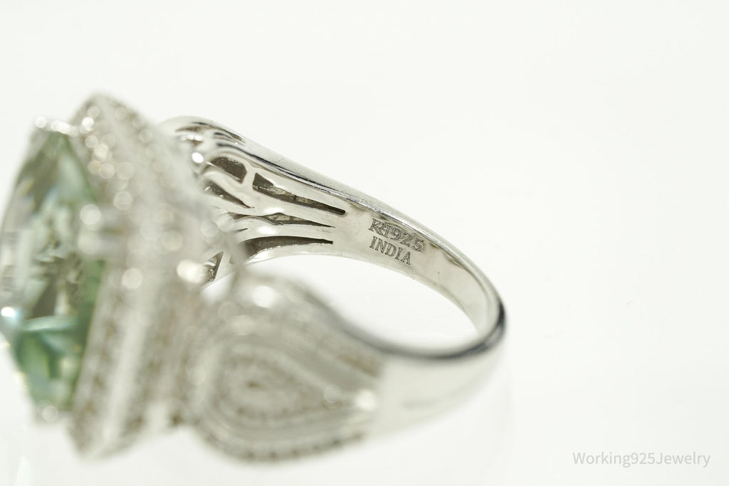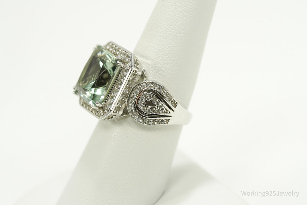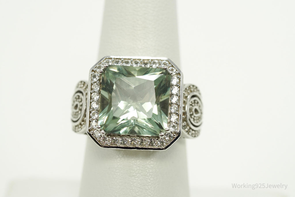 Large Green Amethyst & White Topaz Sterling Silver Ring - Size 7