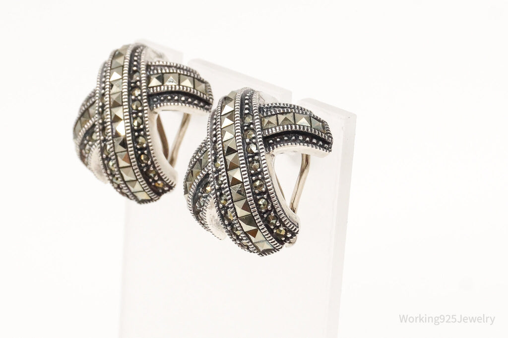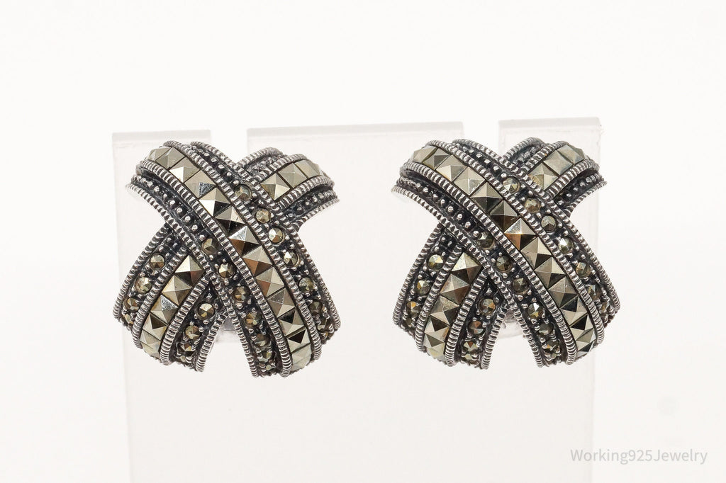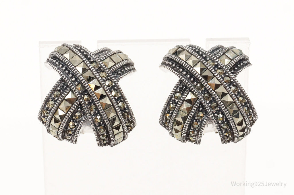 Large Judith Jack Marcasite X Sterling Silver Earrings