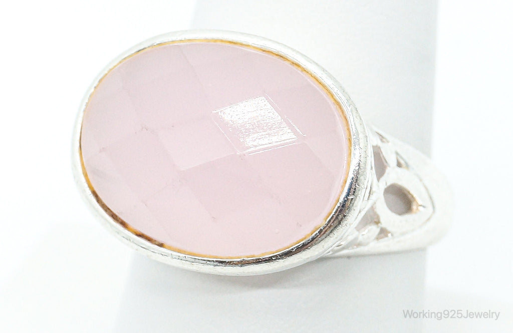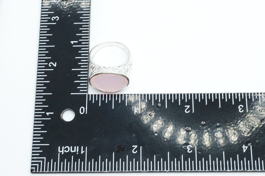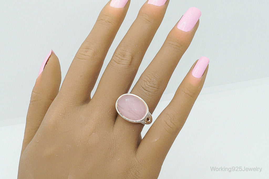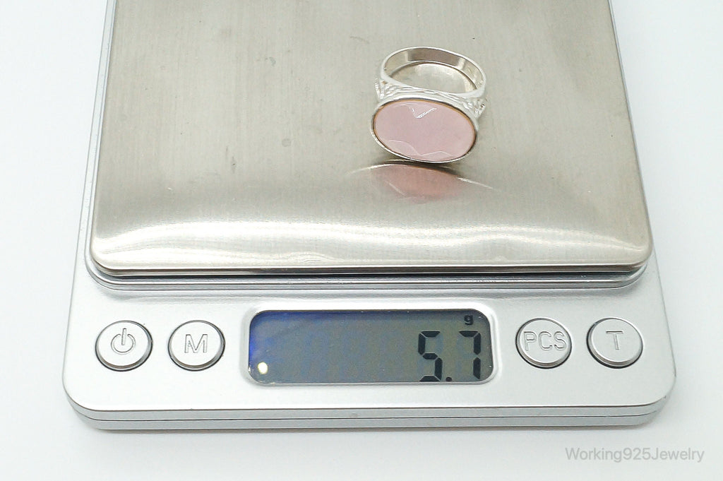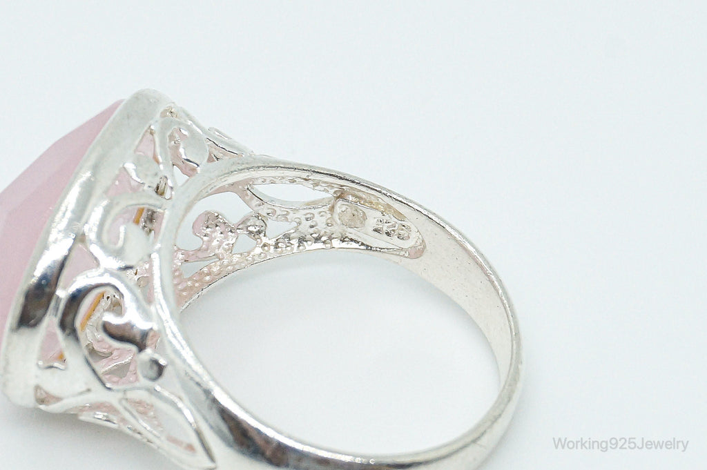 Large Pink Chalcedony Sterling Silver Ring - Size 8