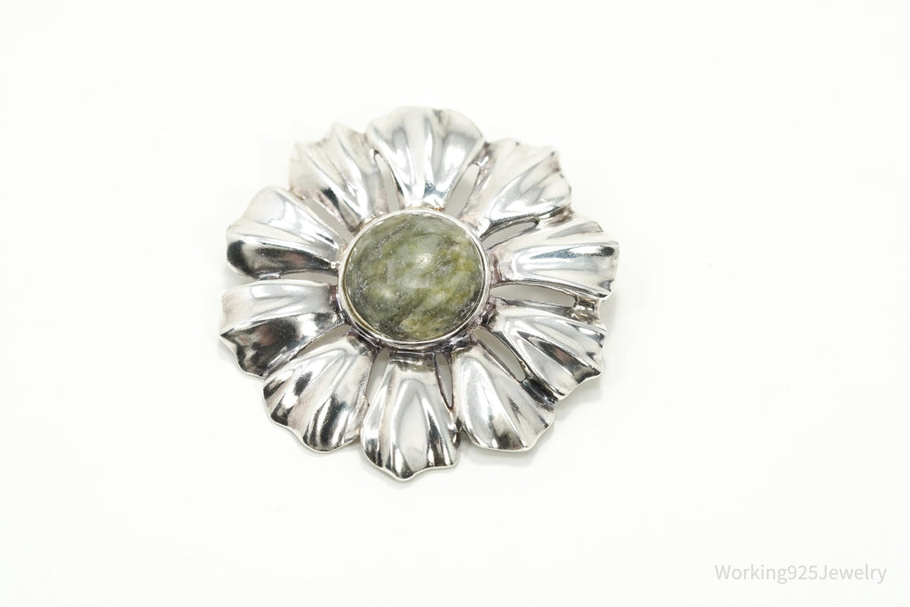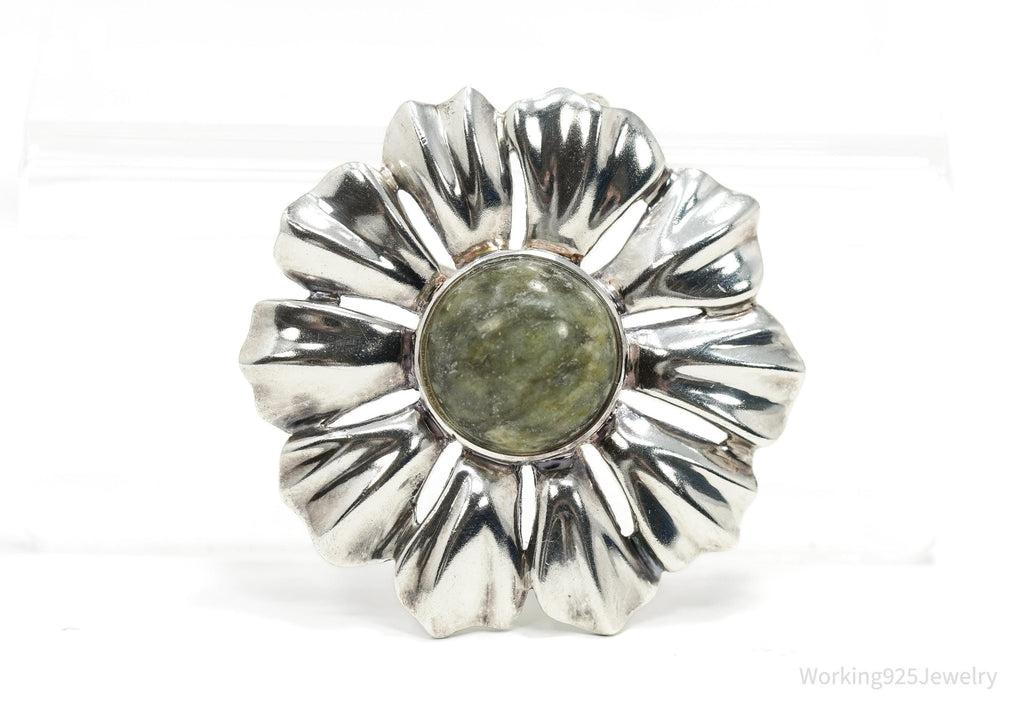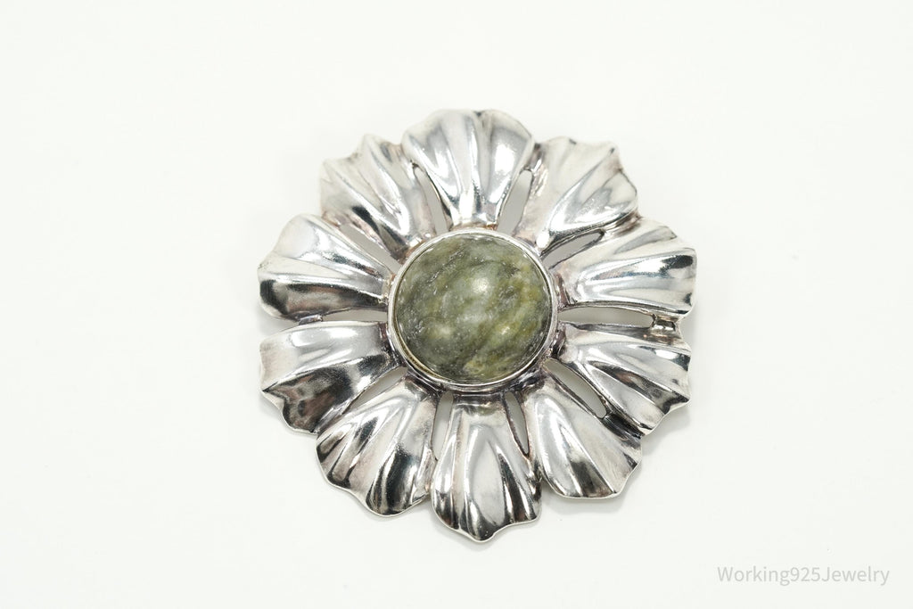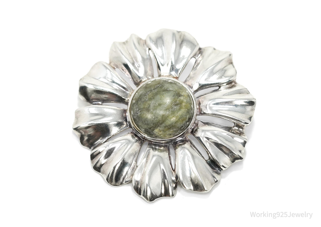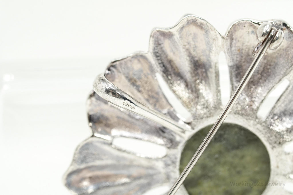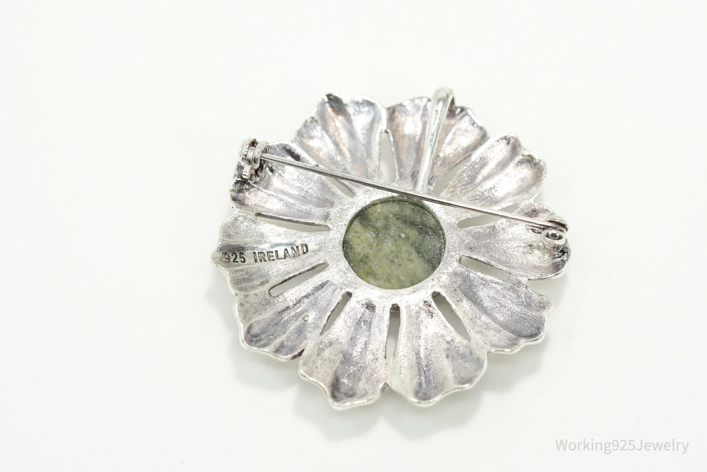 Large Vintage 1990s Connemara Marble Sterling Silver Flower Irish Brooch Pendant 1.75"