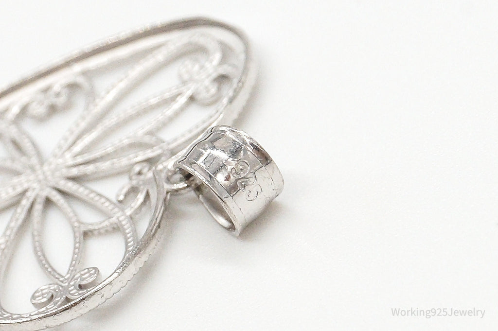 Large Vintage Art Deco Filigree Sterling Silver Pendant