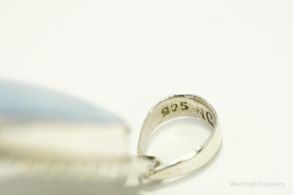 Large Vintage Blue Lace Agate Sterling Silver Pendant