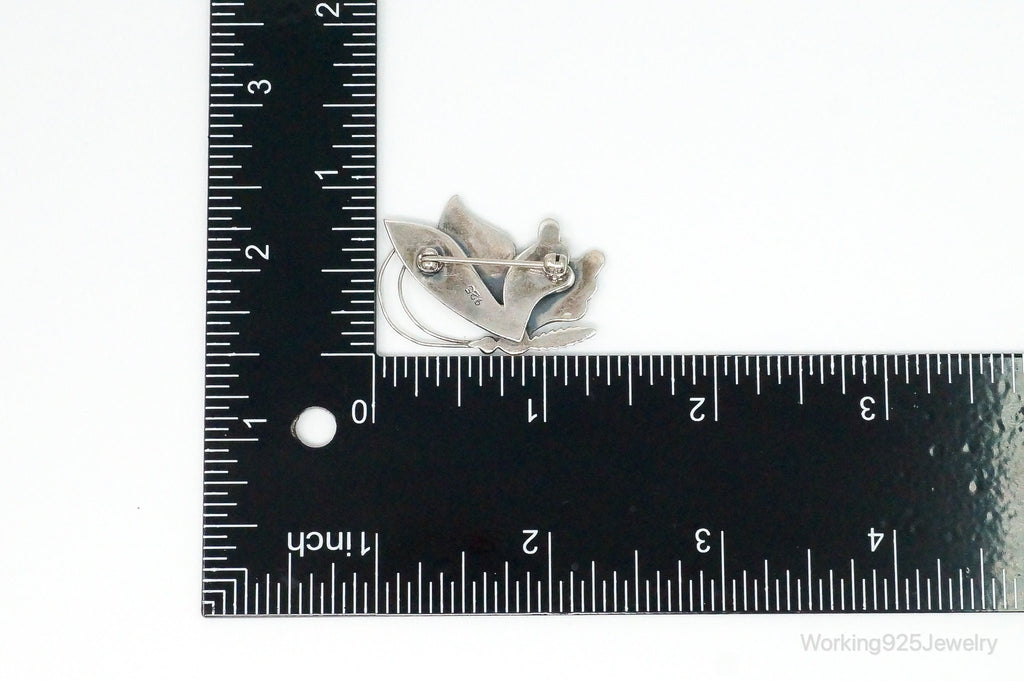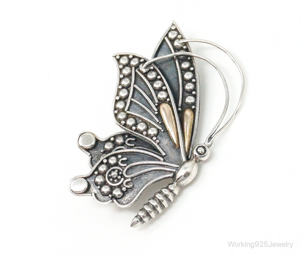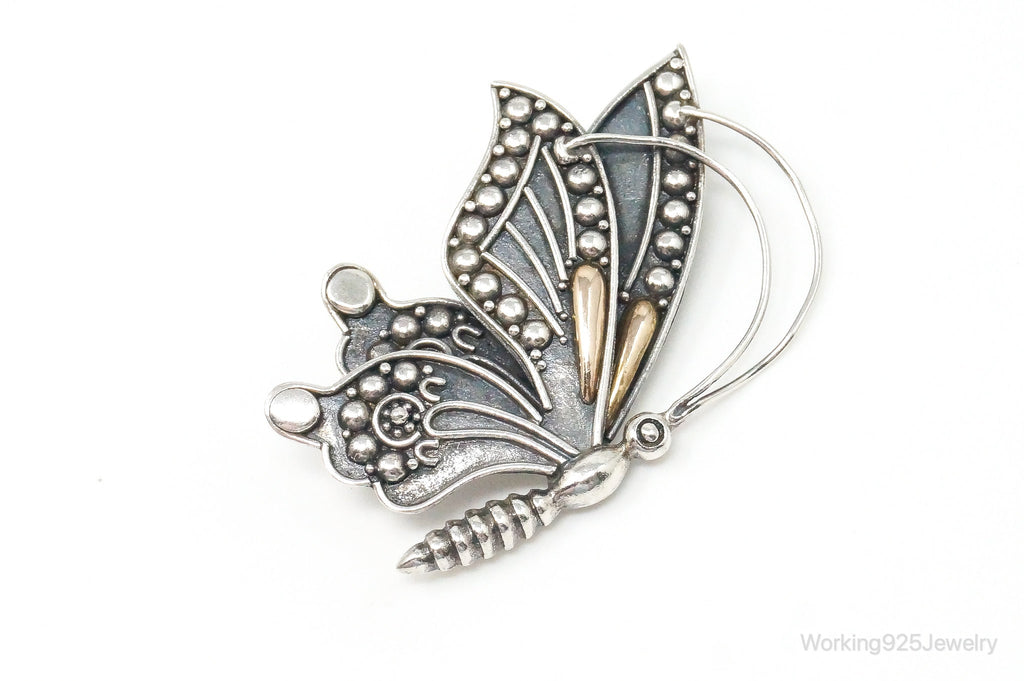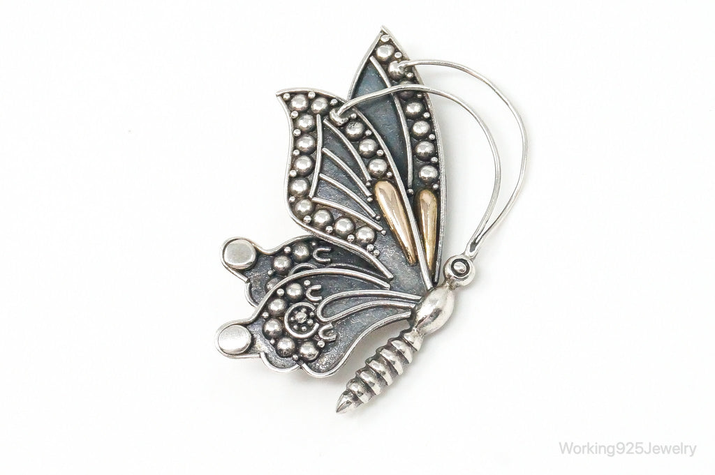 Large Vintage Butterfly Modernist Brass Sterling Silver Brooch Pin