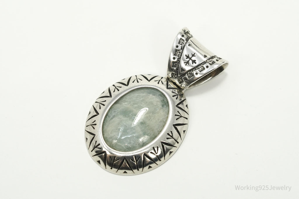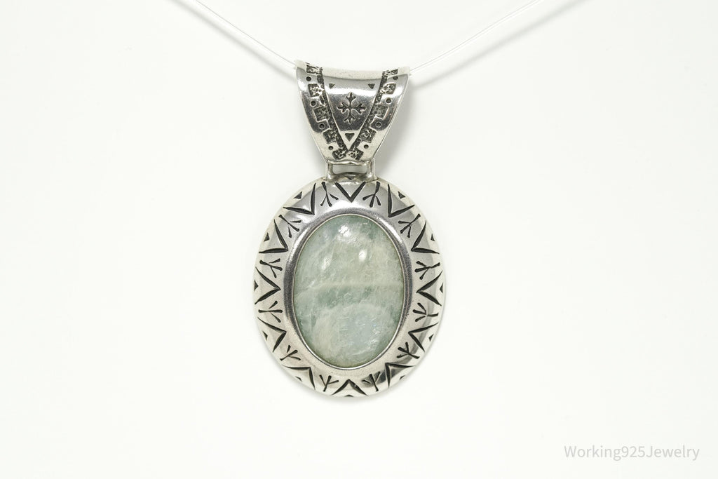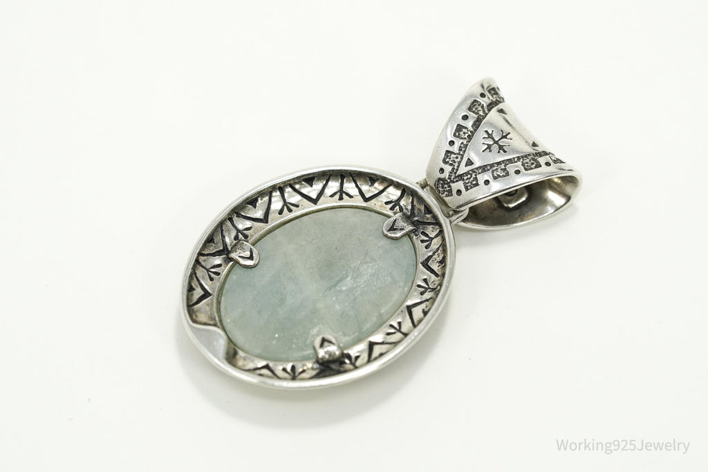 *String shown in photos is for display purposes only.* Large Vintage Carolyn Pollack Relios Milky Aquamarine Sterling Silver Pendant 2"