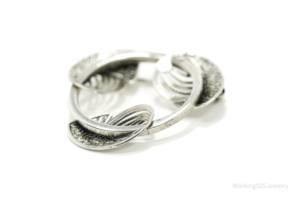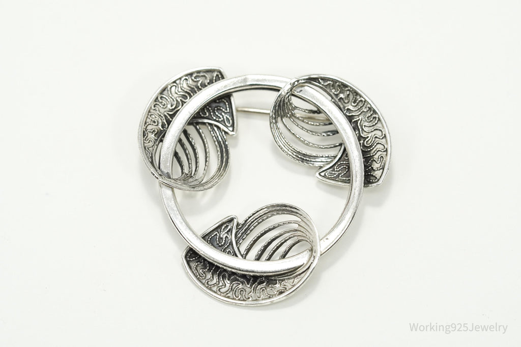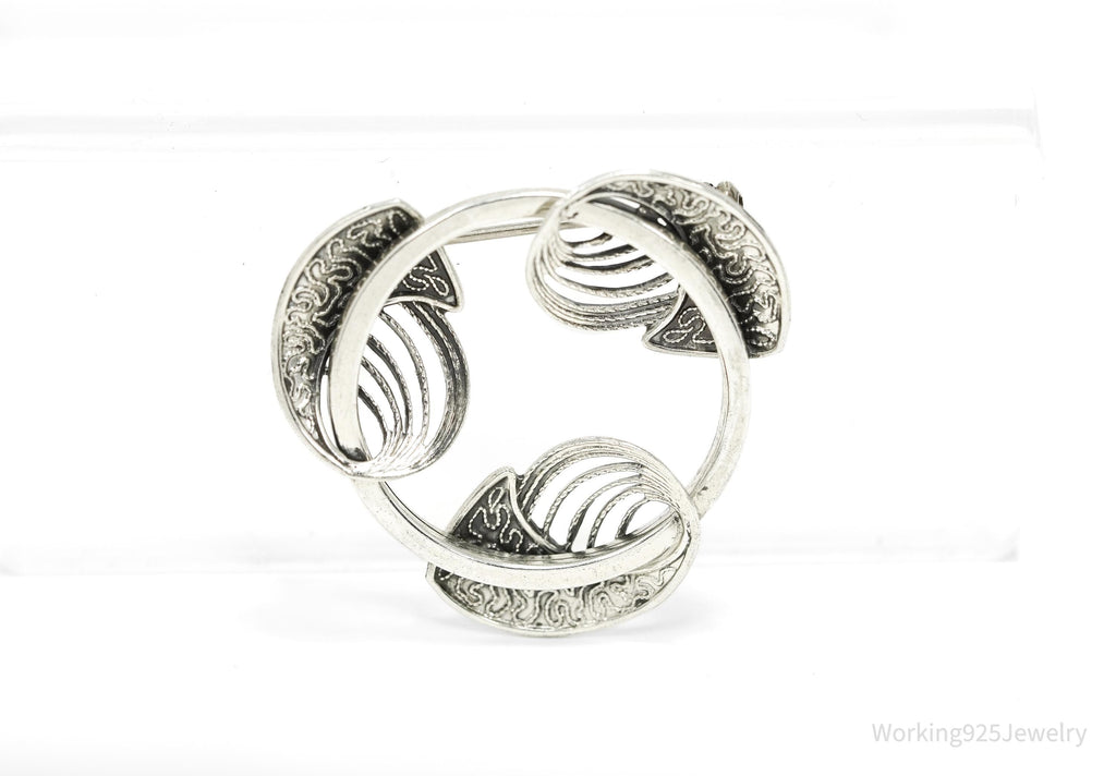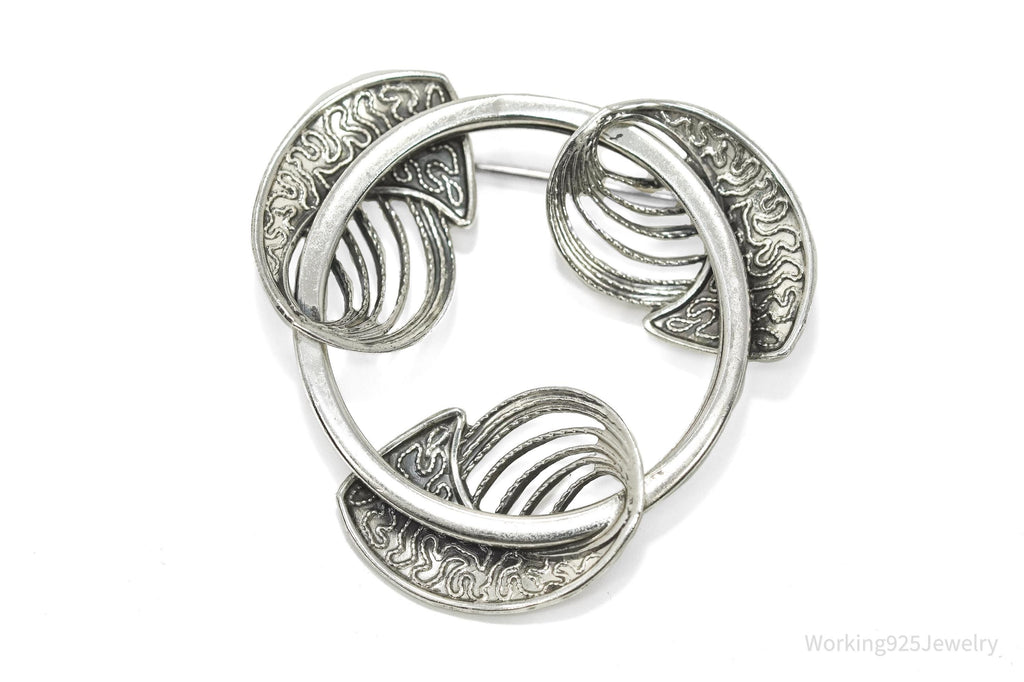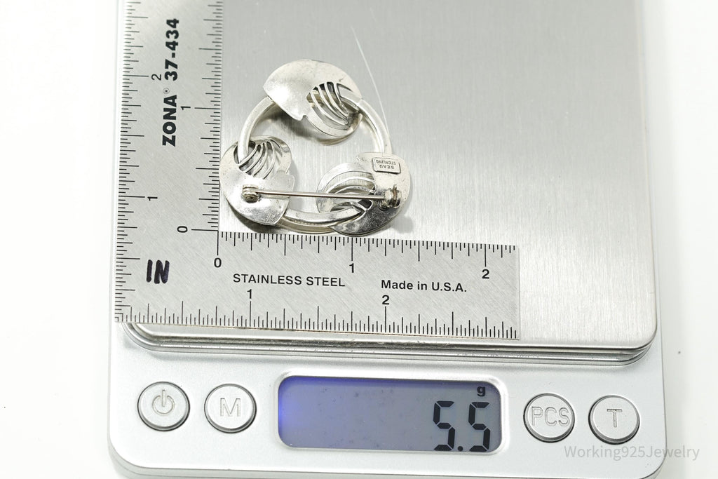 Large Vintage Designer BEAU Modernist Style Sterling Silver Brooch Pin