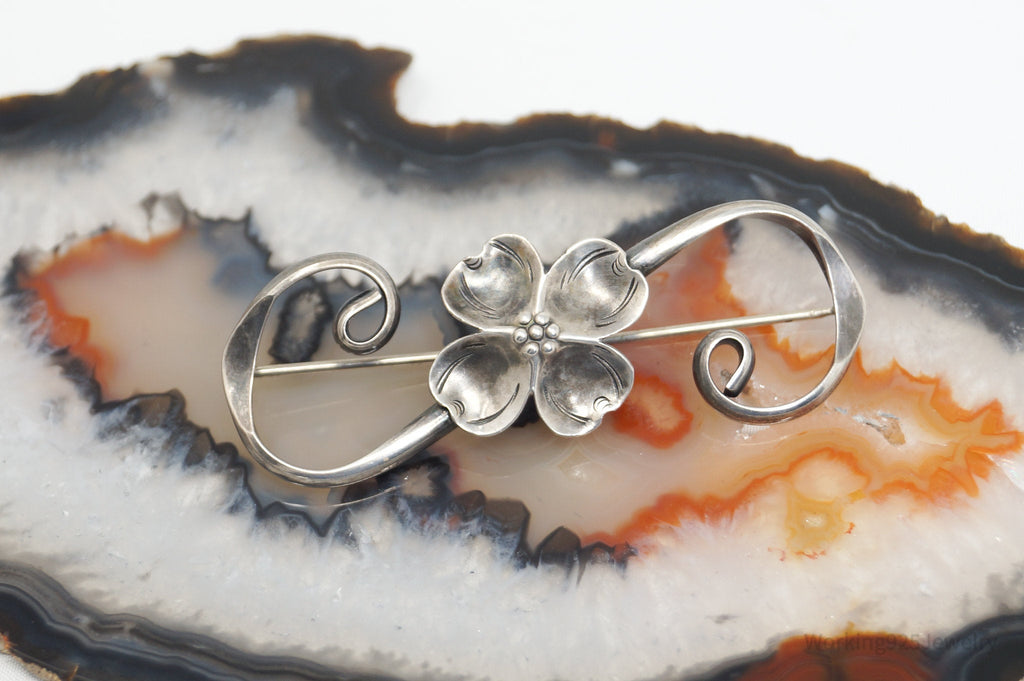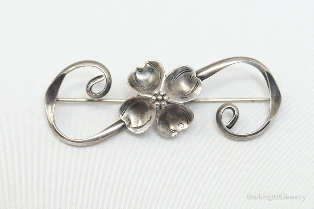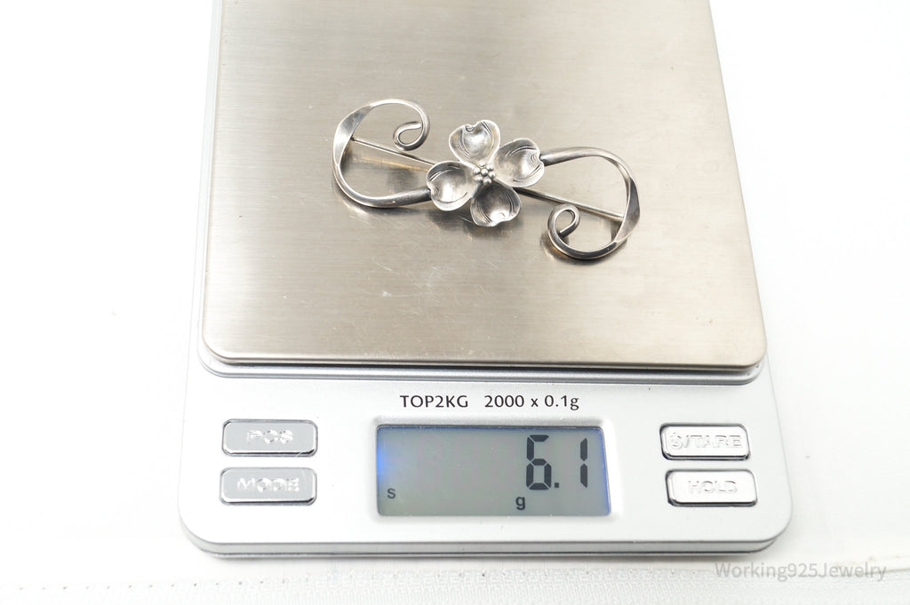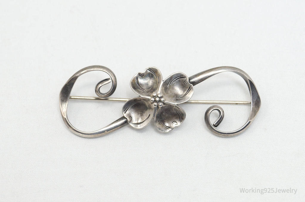 Large Vintage Designer NYE Modernist Dogwood Sterling Silver Brooch Pin