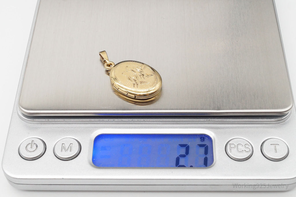 Large Vintage Floral Etched Gold Vermeil Sterling Silver Locket Pendant