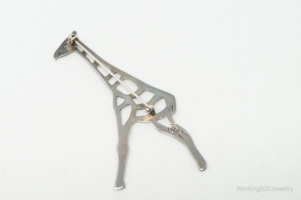 Large Vintage Giraffe Sterling Silver Brooch Pin