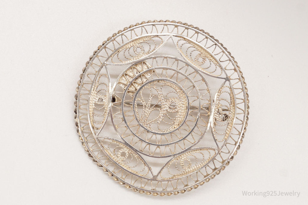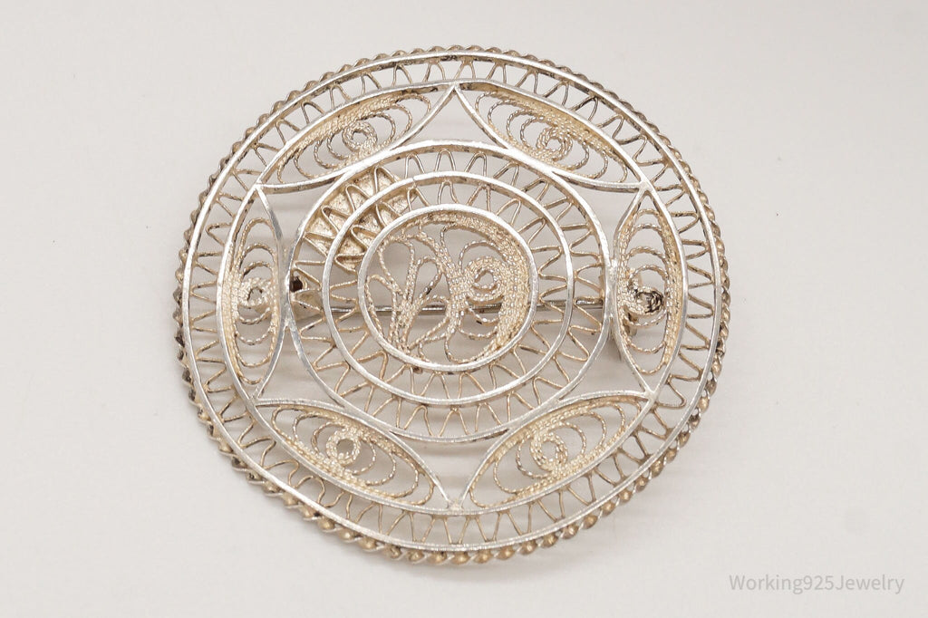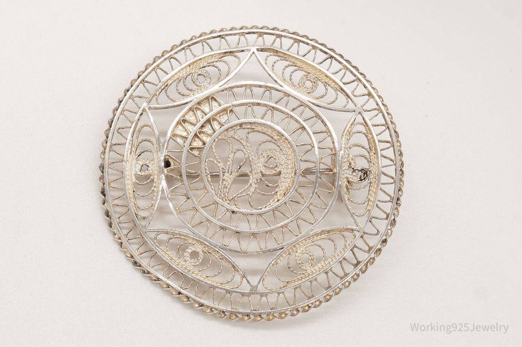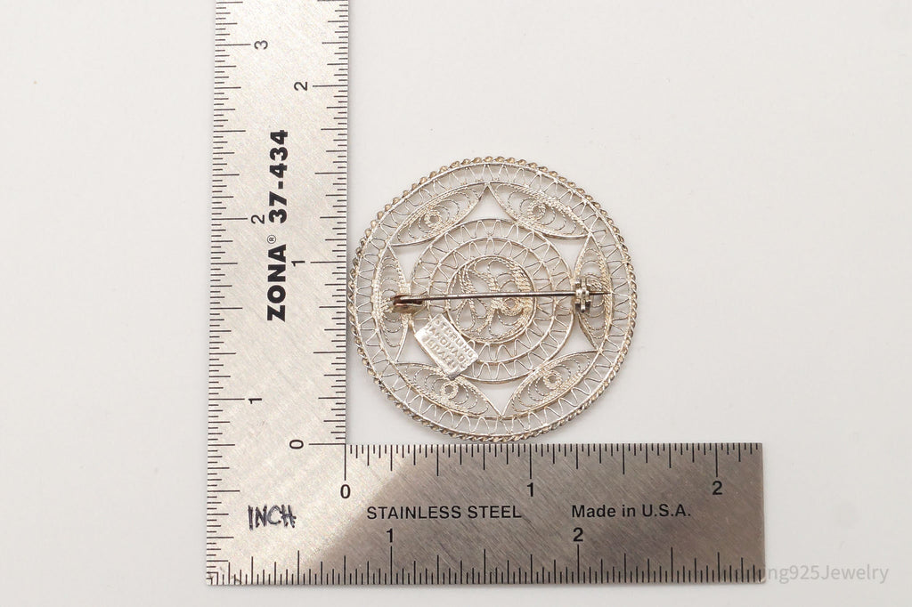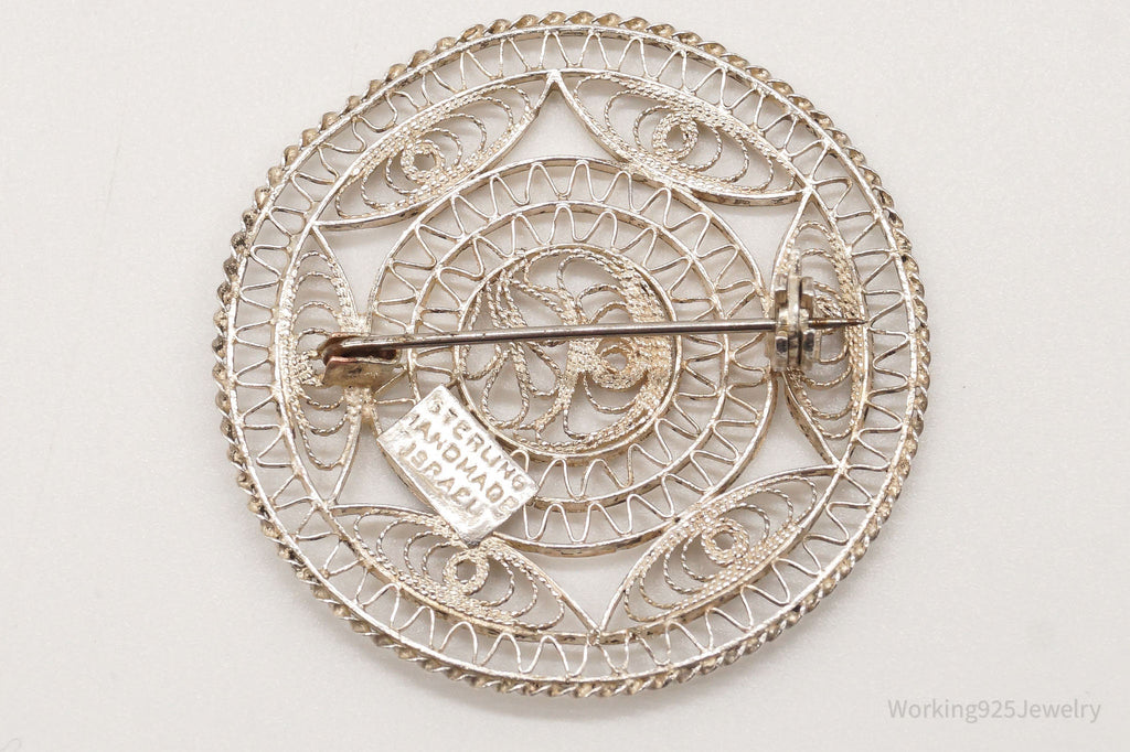 Large Vintage Israel Filigree Sterling Silver Brooch Pin