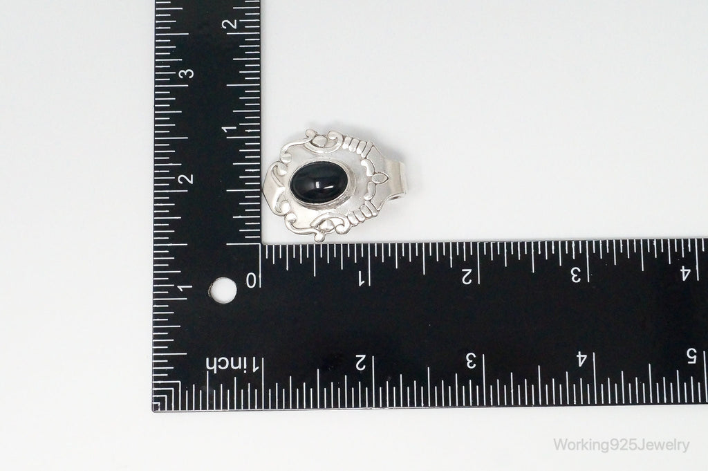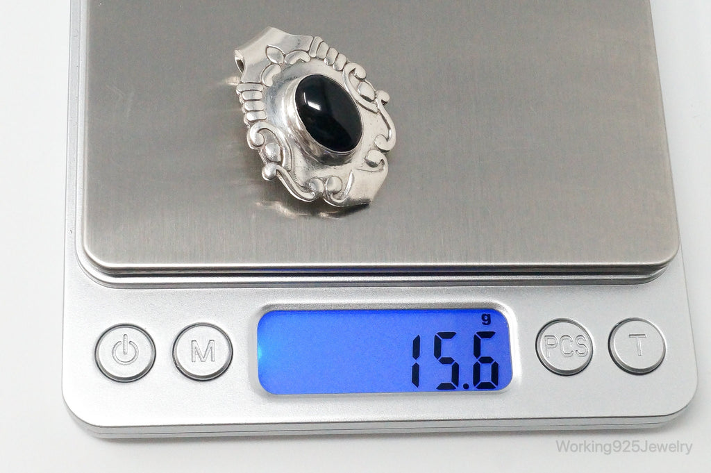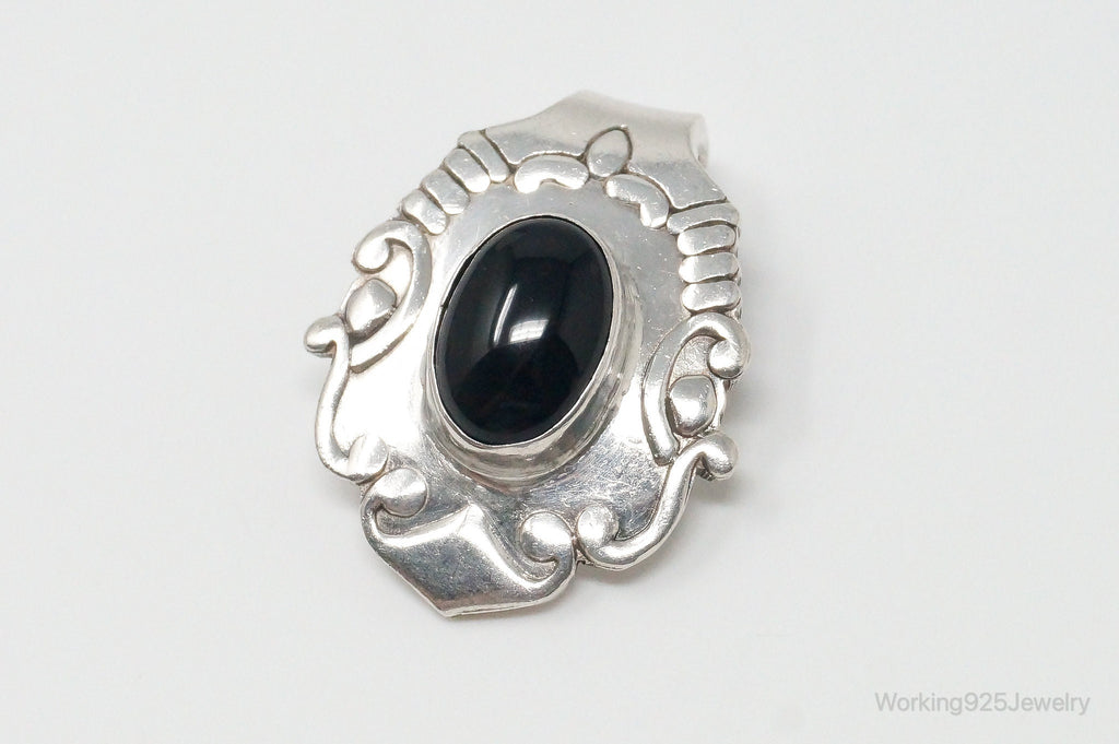 Large Vintage Mexico Black Onyx Art Deco Sterling Silver Pendant