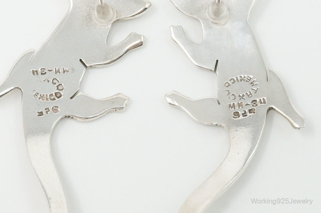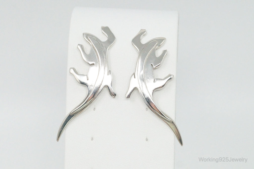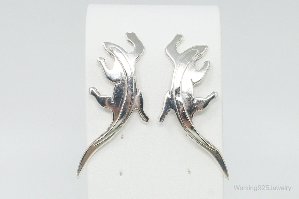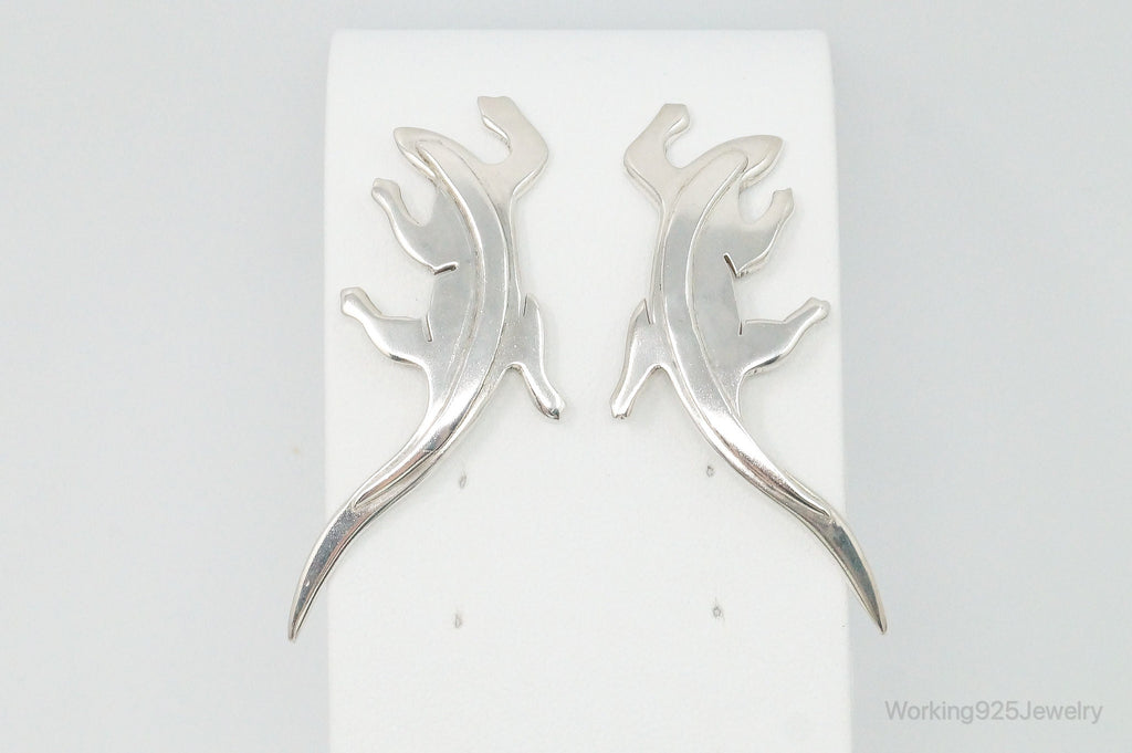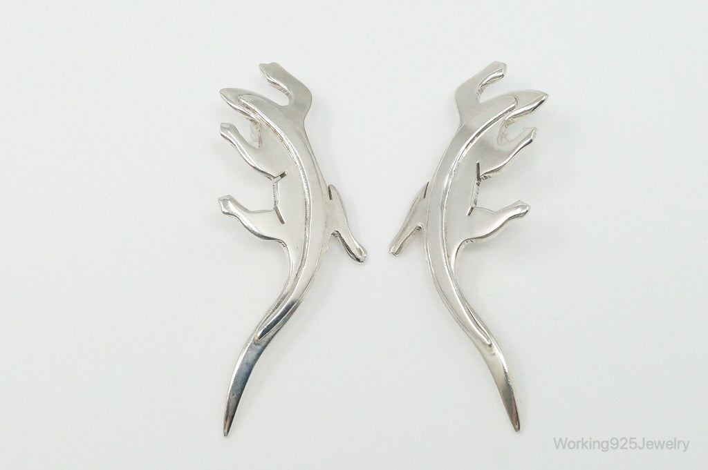 Large Vintage Mexico Designer Lizard Sterling Silver Earrings