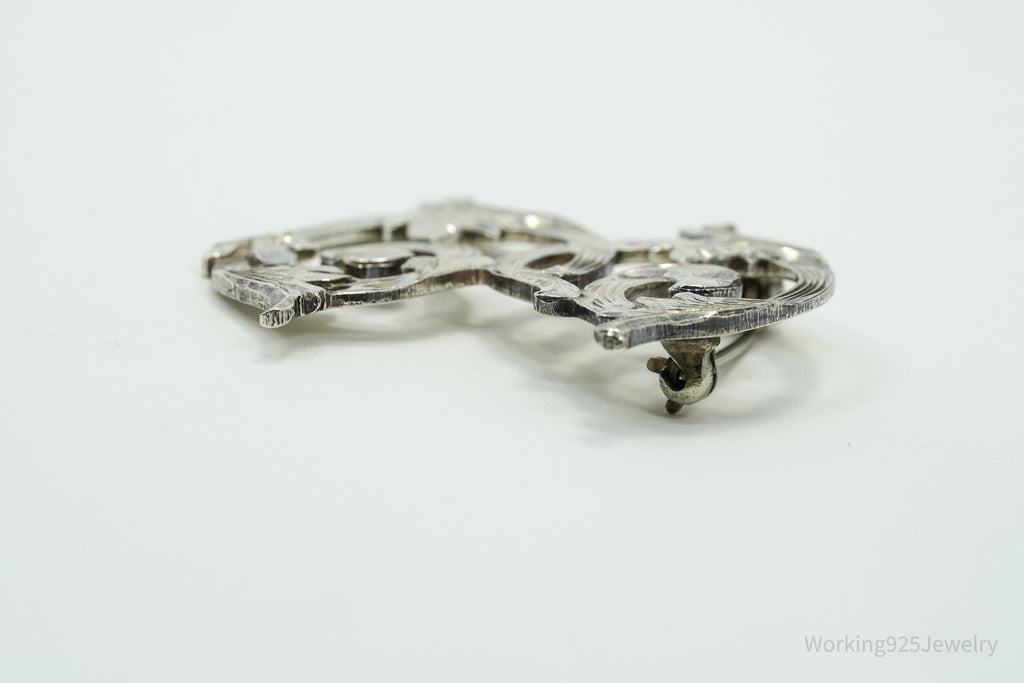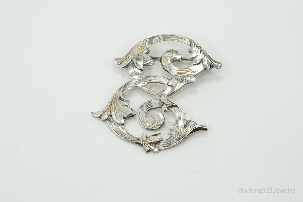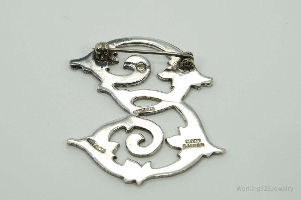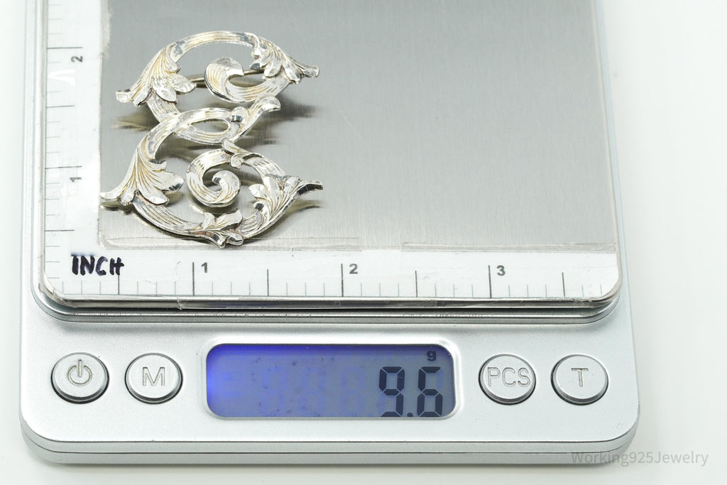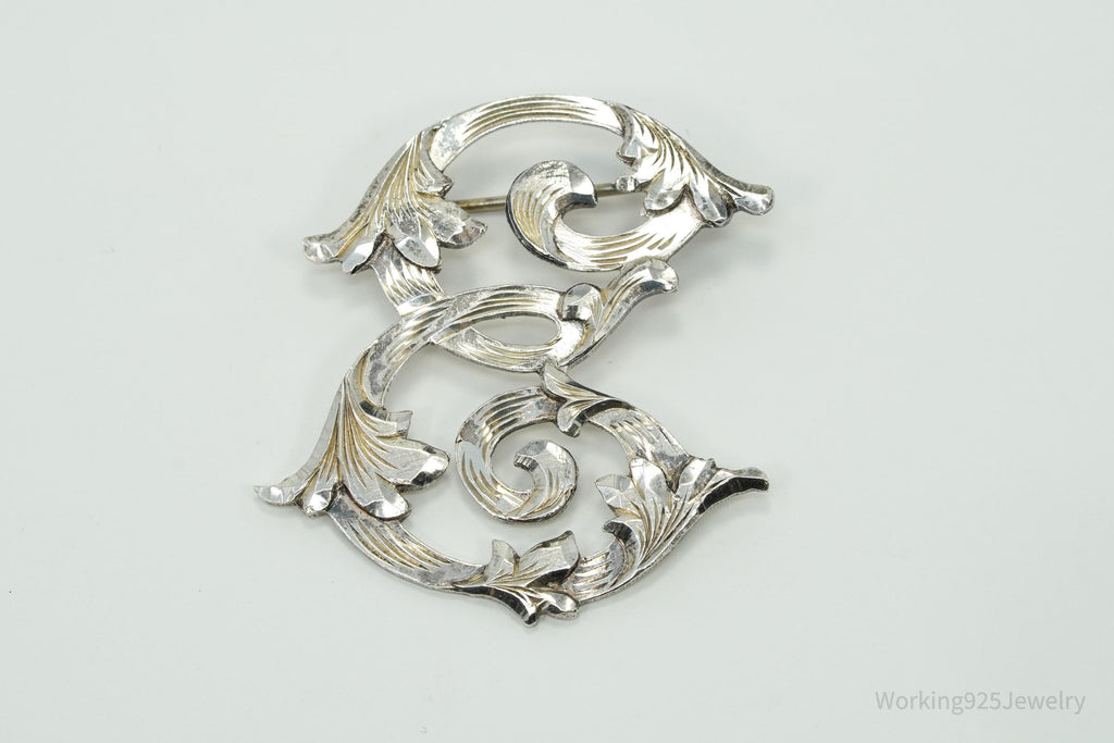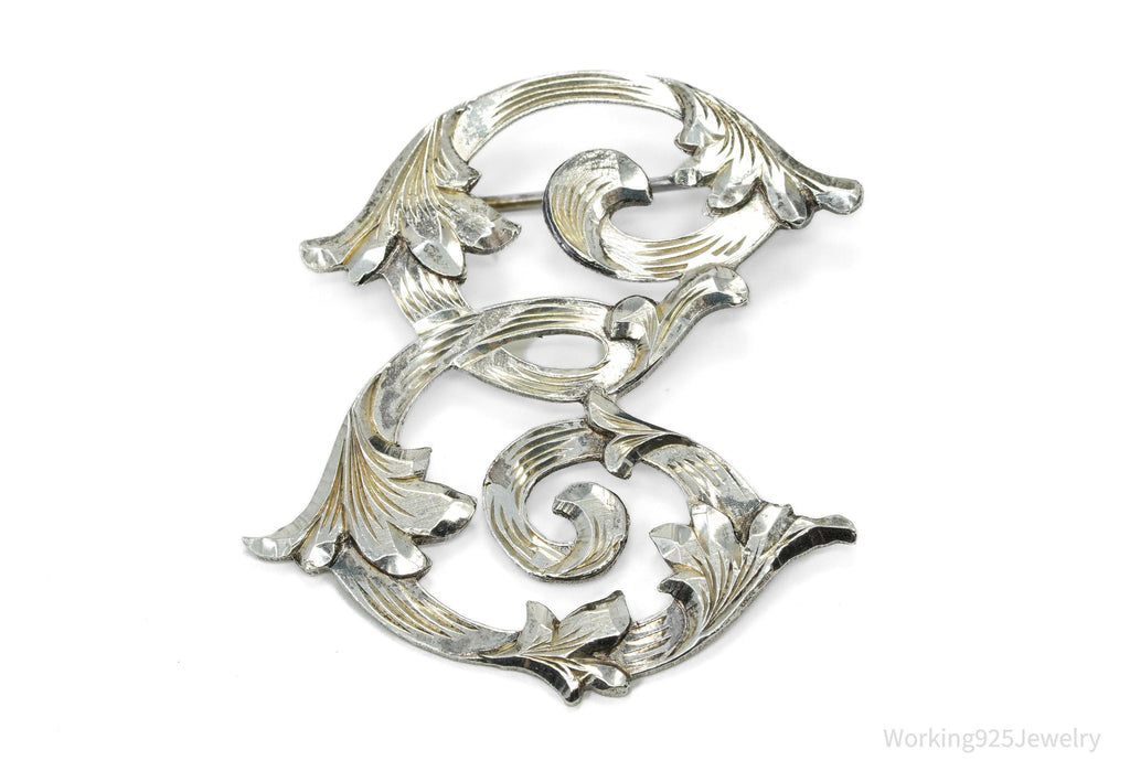 Large Vintage Mexico "E" Sterling Silver Brooch Pin