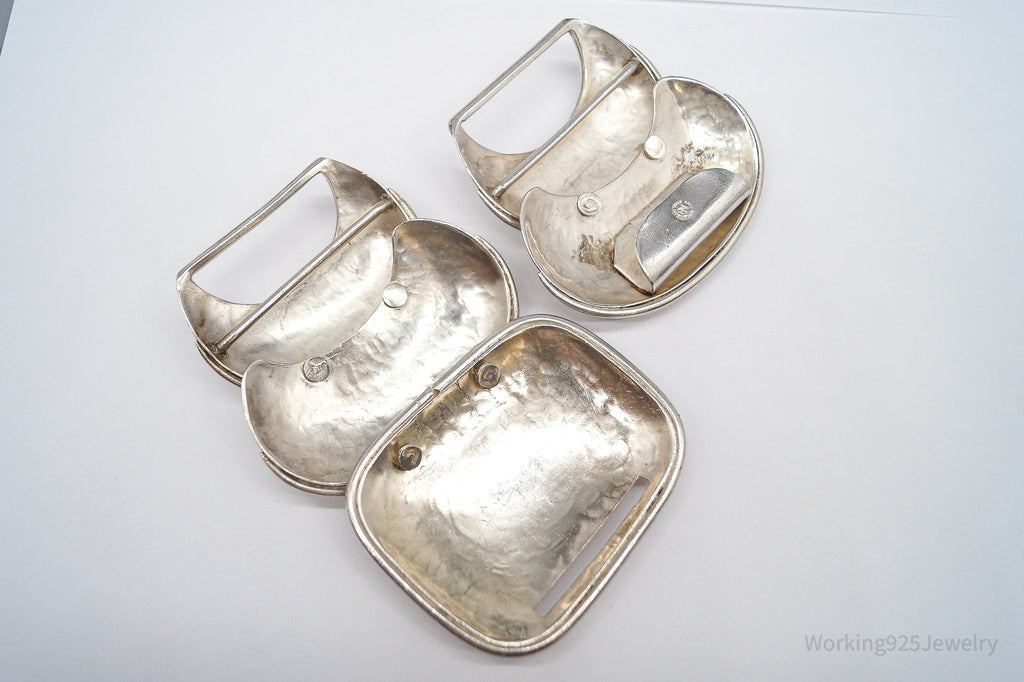 Large Vintage Mexico Modernist Hector Aguilar Armadillo Sterling Silver Belt Buckle