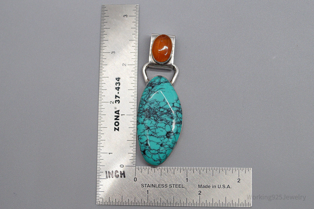 Large Vintage Mexico Modernist HOB Turquoise Carnelian Sterling Silver Pendant