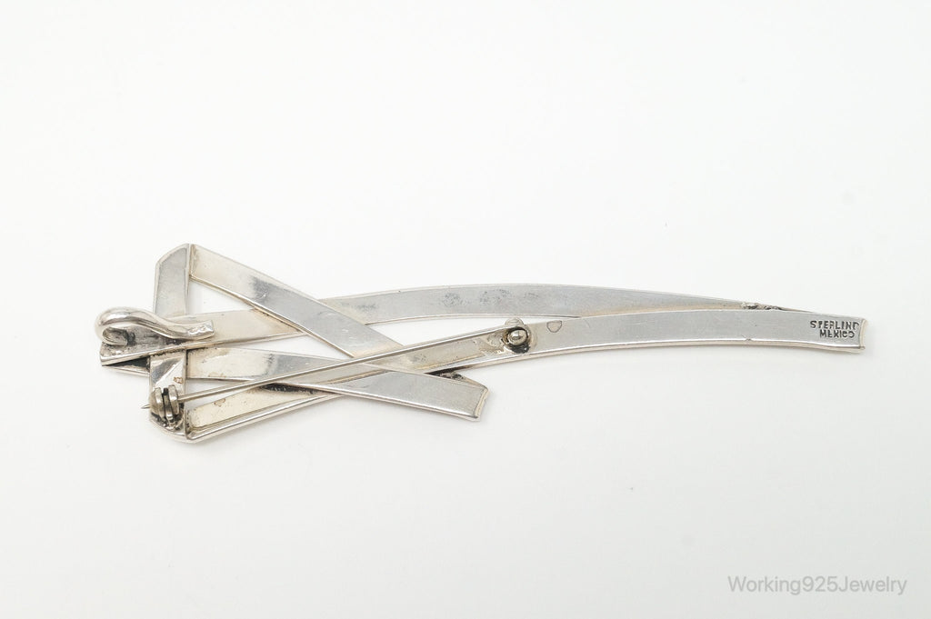 Large Vintage Mexico Modernist Sterling Silver Brooch Pin Pendant